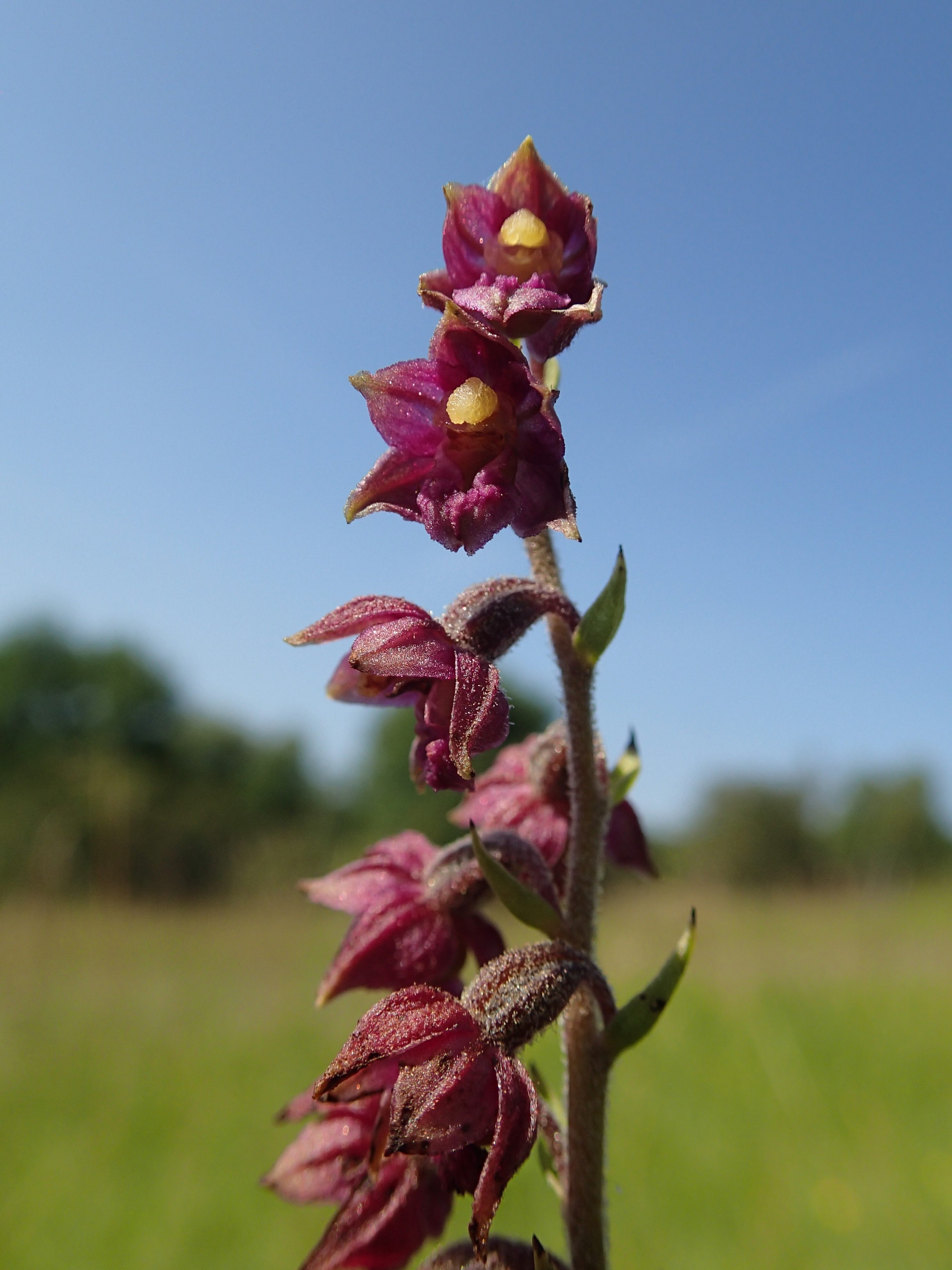 Dark-red Helleborine, Epipactis atrorubens, growing in County Durham, UK