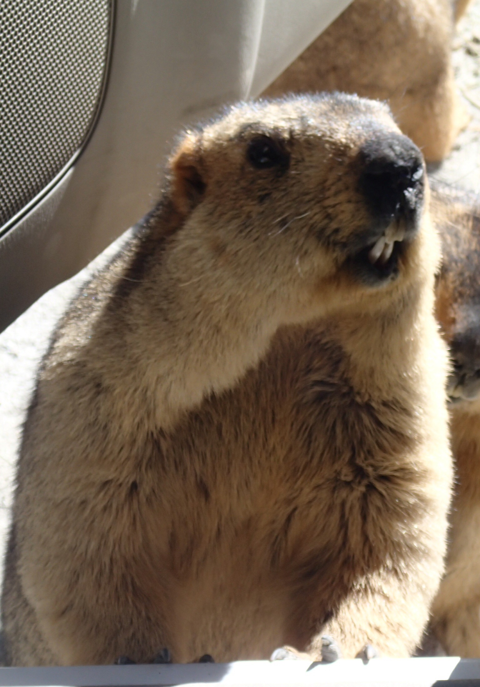 Because we have a lot of ground to cover, we drive straight back to Leh, with only a brief stop at Chang La for toilets. The journey back is enlivened by seeing, first, a group of wild asses and, secondly, some very tame marmots. The latter are obviously used to humans, and perhaps to being fed, and approach the car when we stop. To Tashi’s excitement, one more or less tries to climb into the car! As a devout Buddhist, it’s clear he has a great compassion towards animals, as well as fellow humans – a lovely man.