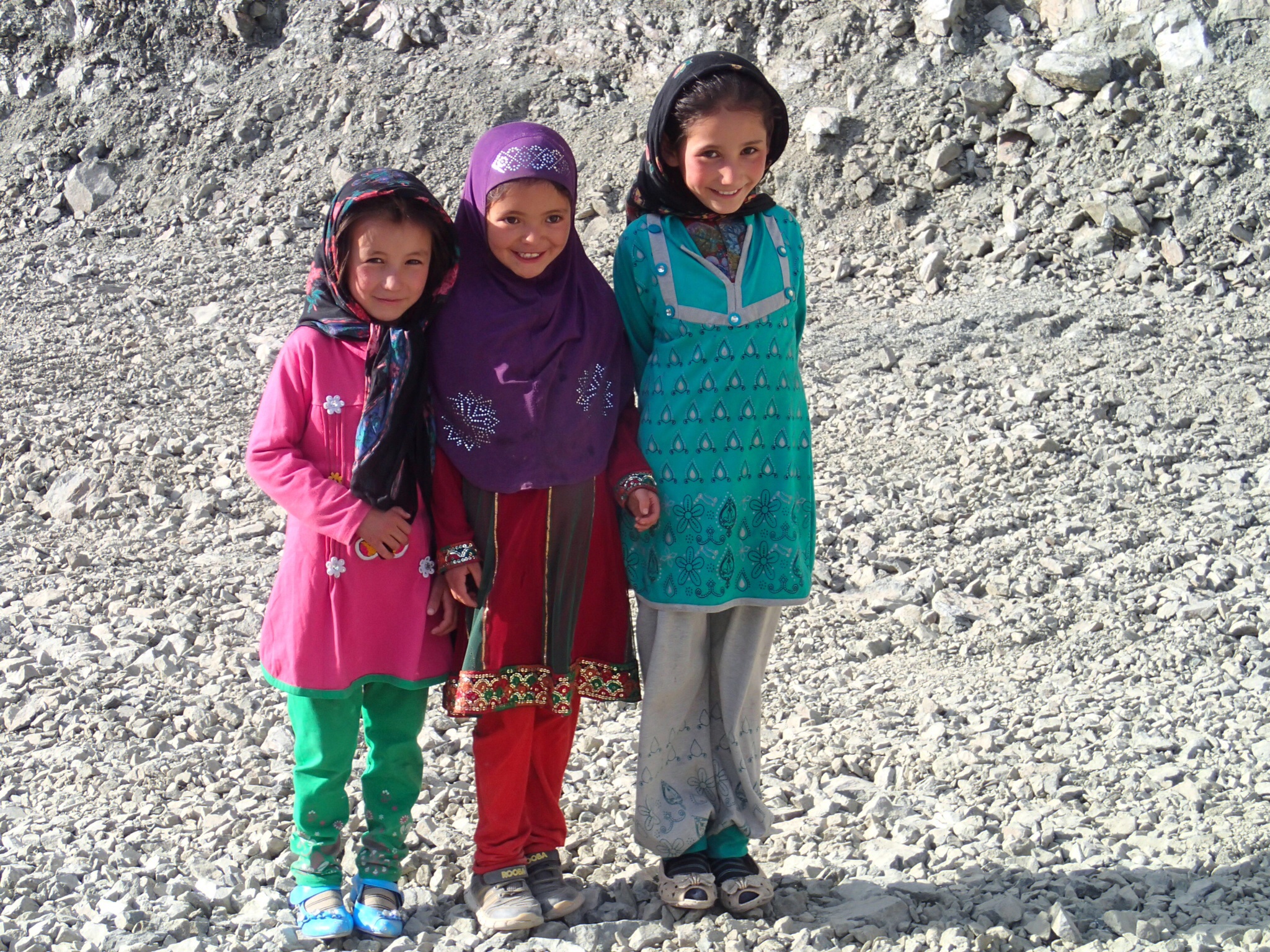 The road is, on the whole, certainly much better (wider and less terrifying) than I remember and Tashi says this has mostly been done over the last five or six years. It’s very dusty on this section of the road though, which doesn’t have a tarmac finish. This cloud has silver linings though – we get to stretch our legs and potter around the piles of sedimentary rocks at the roadside looking for fossils, though we don’t find any convincing ones. John thinks these may be very deep ocean sediments, which would make fossils much less likely. A trio of beautifully-dressed small girls practice their limited phrases of English on us and allow us to take their photos.