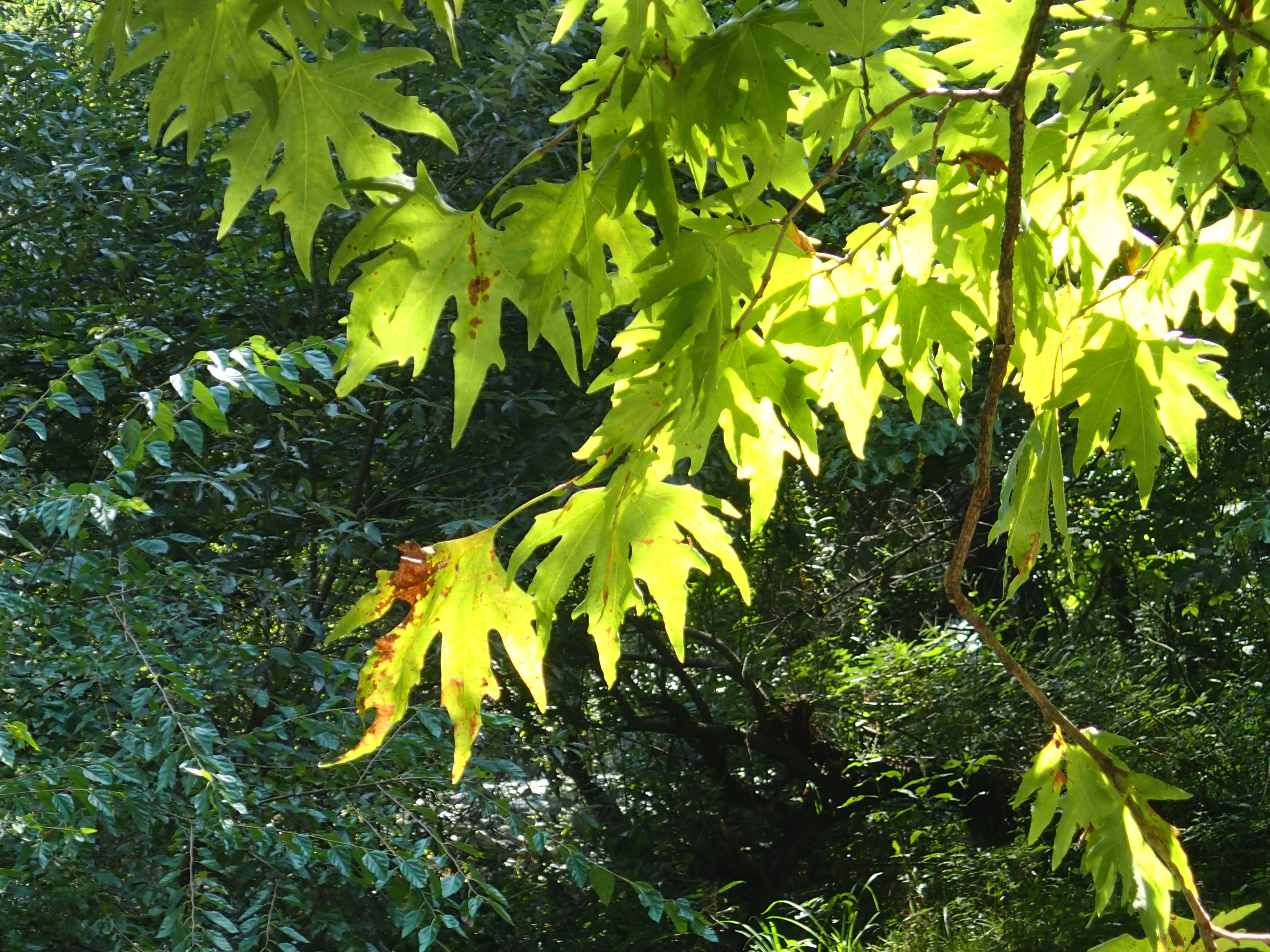 Leaves of an Indian Chinar tree (Platanus orientalis) in Dachigam National Park, Srinagar, where annual rainfall is around 250 mm