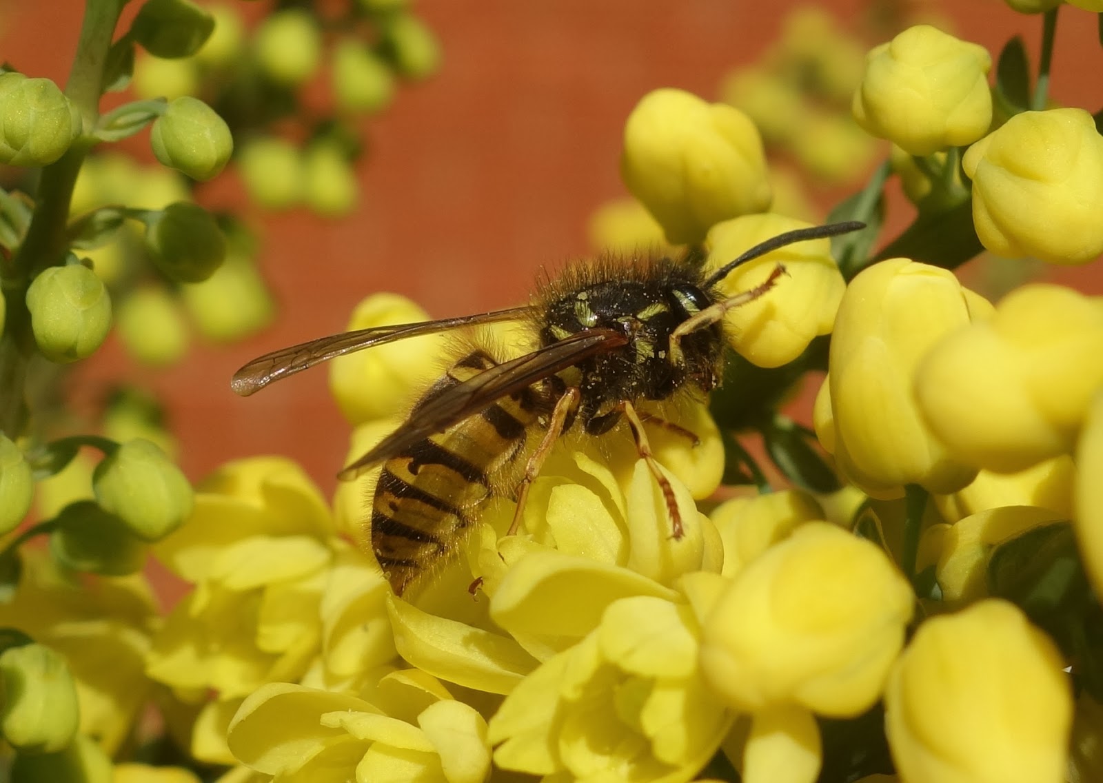 Wasp in search of an open Mahonia flower for its nectar reward. Image: urbanpollinators.blogspot.co.uk