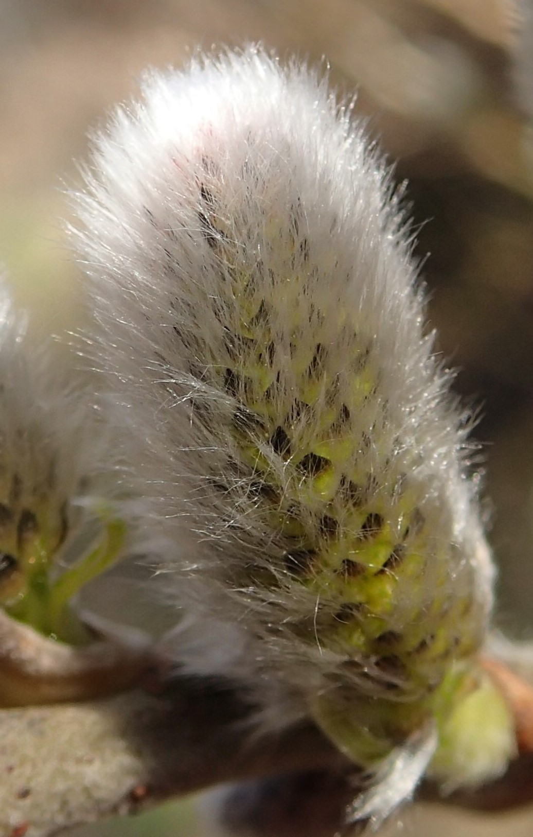 Immature male goat willow (Salix caprea) catkin before anthers emerge and release their pollen