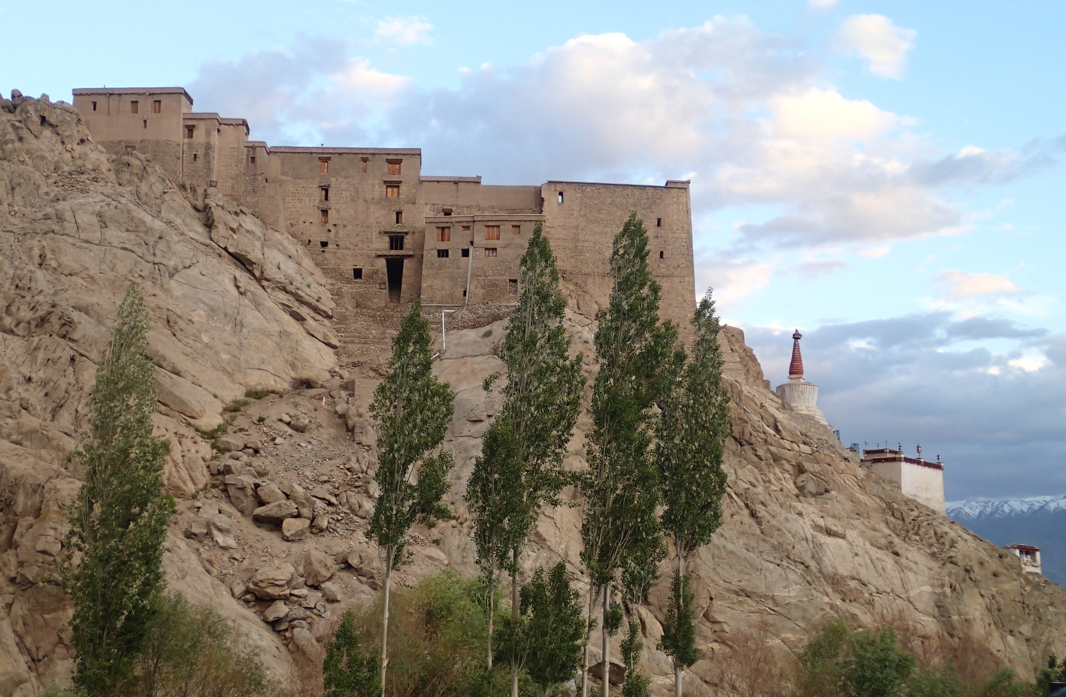 Driving through this part of the Indus valley there is a sense of growing prosperity from all the new buildings going up which is good to see. It’s also really good to see that even the smart new houses are generally being built in the traditional style and using the traditional, sustainable, building materials of mud bricks and wood. We stopped briefly at a viewpoint over the Indus at Basgo and then pressed on to Leh, arriving about 3 pm. Yet again, there has been confusion about lunch and the hotel were apparently expecting us, despite the fact that the drivers and Fouzia knew we had packed lunches from the Apricot Tree. We managed to change this into tea and coffee sitting outside in the shade, whilst we were checked in, which seemed to be a rather laborious process.