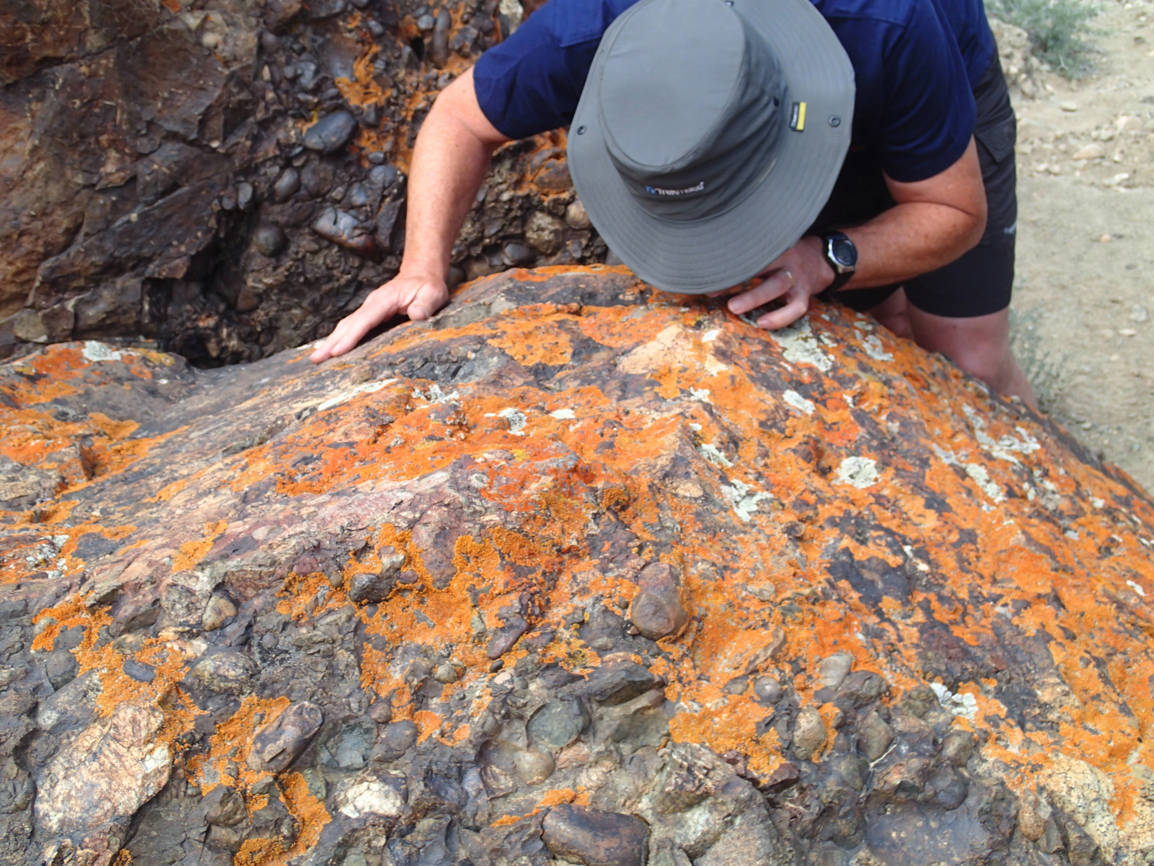 From a distance these look very orange and there is certainly a lot of Xanthoria elegans present but there is also a lot black Verrucaria, which some in our group know as ‘desert varnish’ because of its shiny appearance. There was also a surprising amount of grey and even foliose lichen in fissures In the rock, showing how quickly these organisms can start to modify their environment when a little water is present.
