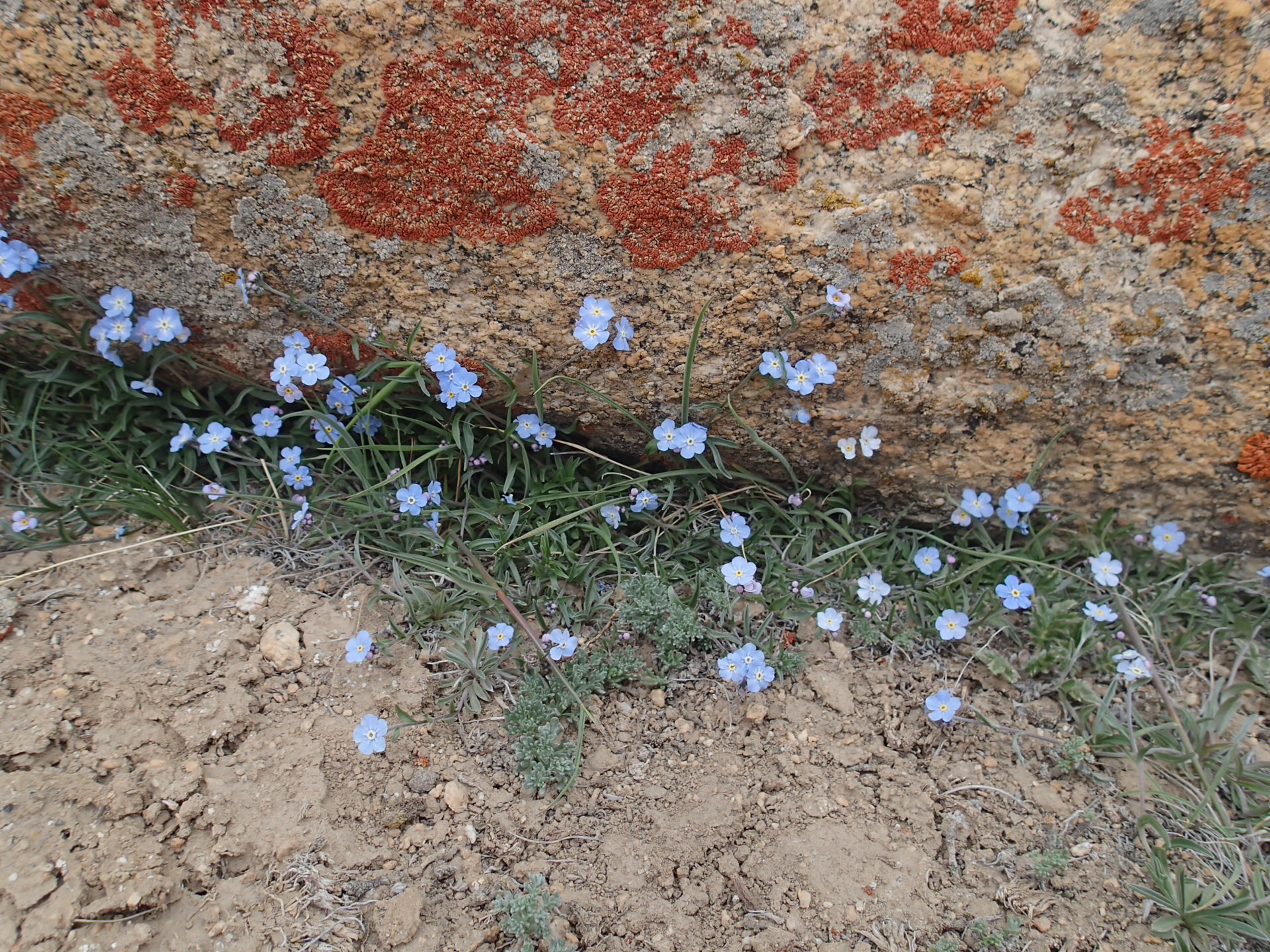 Our lunch stop – Myosotis, Viola and Euphorbia stracheyi