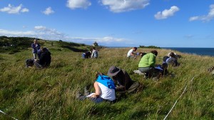 For the third time this summer John and I ran a successful and enjoyable field weekend in Northumberland aimed at first year OU students with an interest in geology and ecology (see Fieldwork versus virtual reality). Highlights of our ecology day, learning how to survey plants and lichens on Cullernose Point, included cabaret provided by a pod of dolphins cavorting just a few hundred metres offshore.