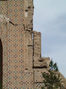Bibi Khanym mosque, with fragile looking walls in the courtyard (below)