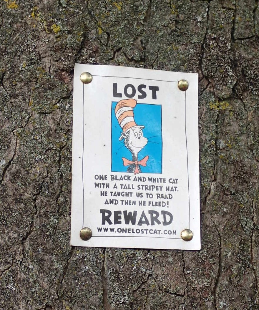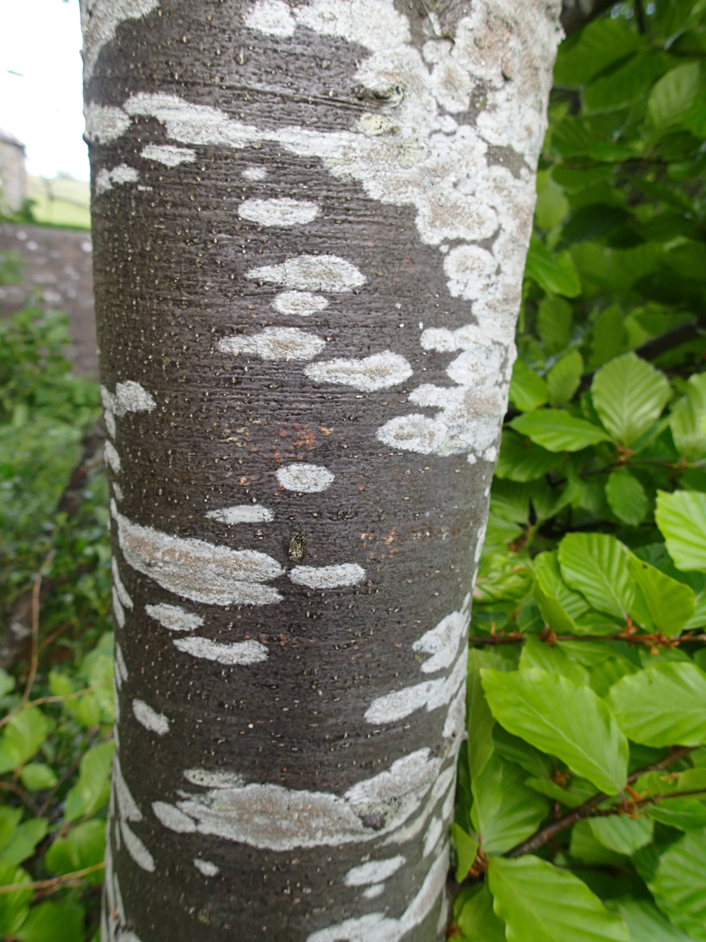 We notice beech trees with beautifully-patterned bark and one with a slightly confusing sign…