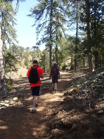 One highlight of our trip was a day walking in a long loop around the summit of Mount Olympus; at 1952 m, the highest point on the island.  With temperatures in the mid 20s it was hard to picture ski slopes here in winter.  The shade cast by Pallas Pine (Pinus nigra subsp. pallasiana) Cyprus cedar (Cedrus brevifola) and Juniperus foetidissima, species limited to the highest parts of the Tróödhos range in Cyprus, made for pleasant walking conditions despite the heat.  I’m glad to say the Juniper didn’t live up to its name!