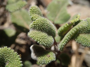 and the amazingly glandular, hairy leaves of Salvia willeana, yet to produce its yellow flowers.