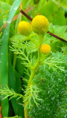 Some Asteraceae have no ray florets worth mentioning – Pineappleweed presumably uses its distinctive scent to attract pollinators instead.