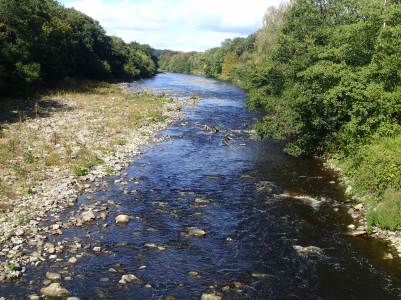 Beyond Wadley the path descends again in a gentle arc to the river, through another field of frisky cattle. Witton-le-Wear itself is on a hill above the river next to the A68 Roman road and I wasn’t particularly pleased, as we crossed the road into the village, to be reminded how steep the climb on my bike to retrieve the car was going to be! The path crosses the Wear at Witton then carries on through the grounds of Witton castle along the river, delightful in the afternoon sunshine.