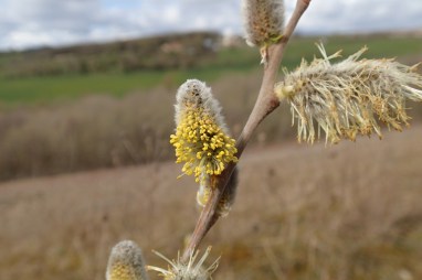Most of the goat willows which were flowering last month are finished now, though some of the smaller trees growing on the limestone scree slopes are a little behind. More coltsfoot and gorse in flower carry on the yellow theme for the day.