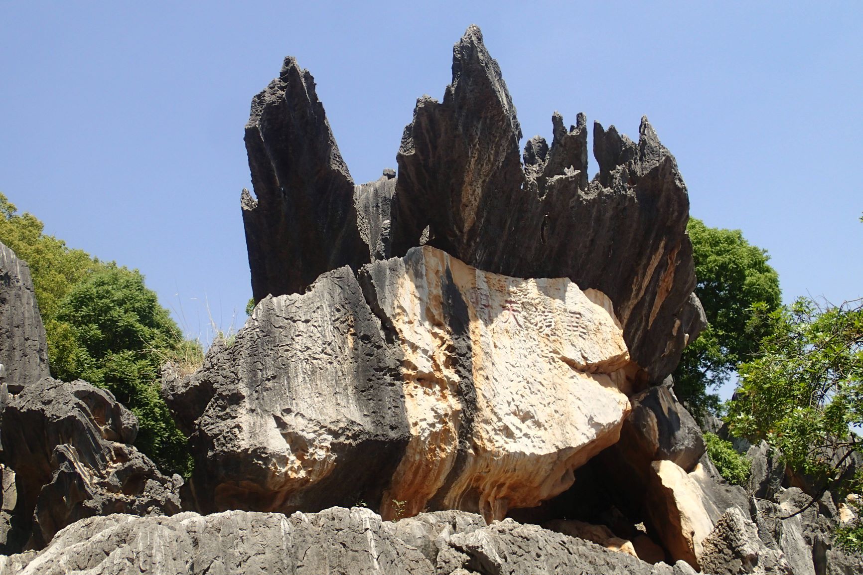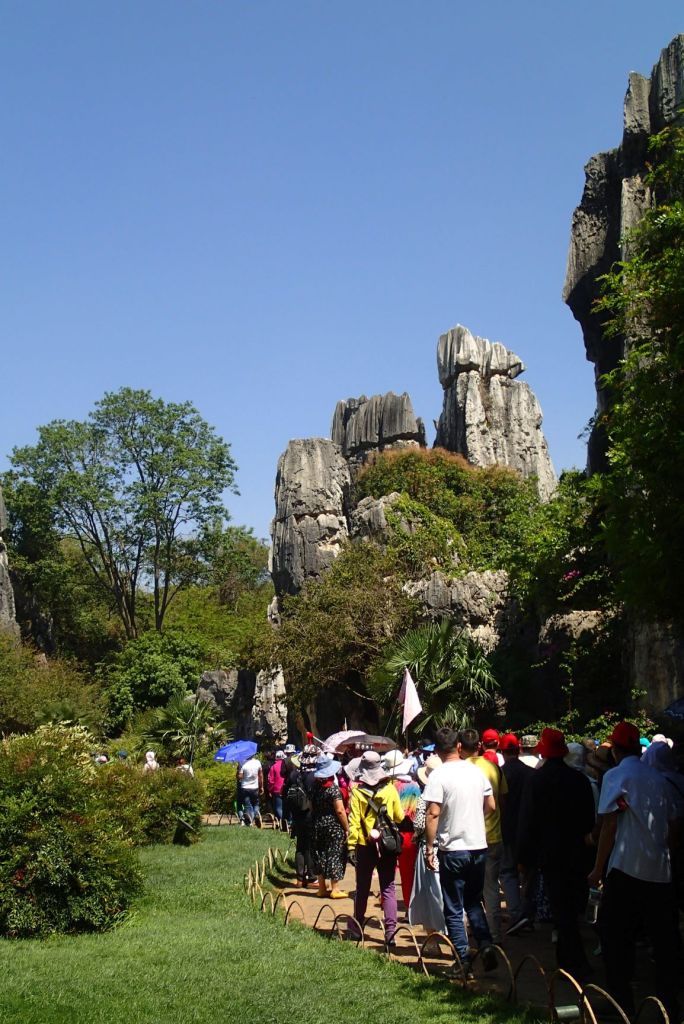 The Stone Forest, near Shilin, is one of Yunnan’s star attractions – a world heritage site and another geopark – around 90 minutes drive from Kunming. We toyed with the idea of metro plus bus to get there but a taxi is much quicker and much less hassle and, with six of us sharing, not so expensive. This turned out to be a very good decision, with temperatures in the high 20s much of the day.