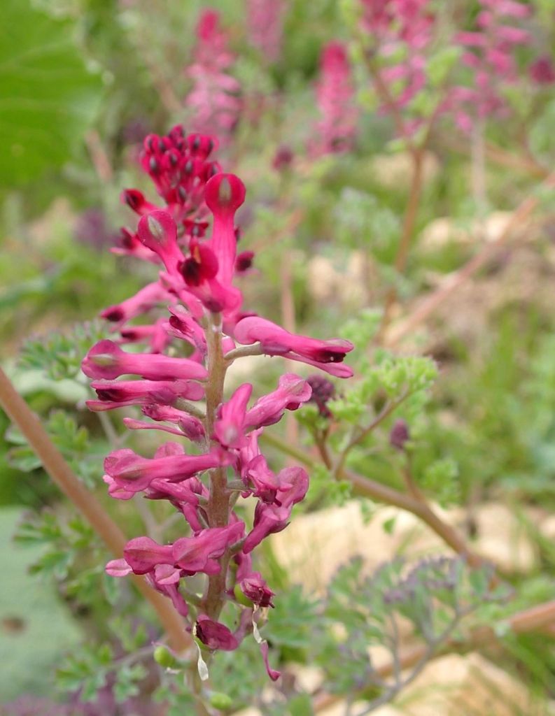 There are plenty of rosettes growing amongst the Charlock and a little Shepherd’s purse and Groundsel in flower but the biggest surprise is swathes of Common fumitory, Fumaria officinalis.  Like the Charlock, this is not something I saw growing in this area last year in any quantity. Rose (The Wildflower Key) says that F. officinalis is relatively rare in the north of England so I’d be interested to know where the topsoil used in restoration came from.