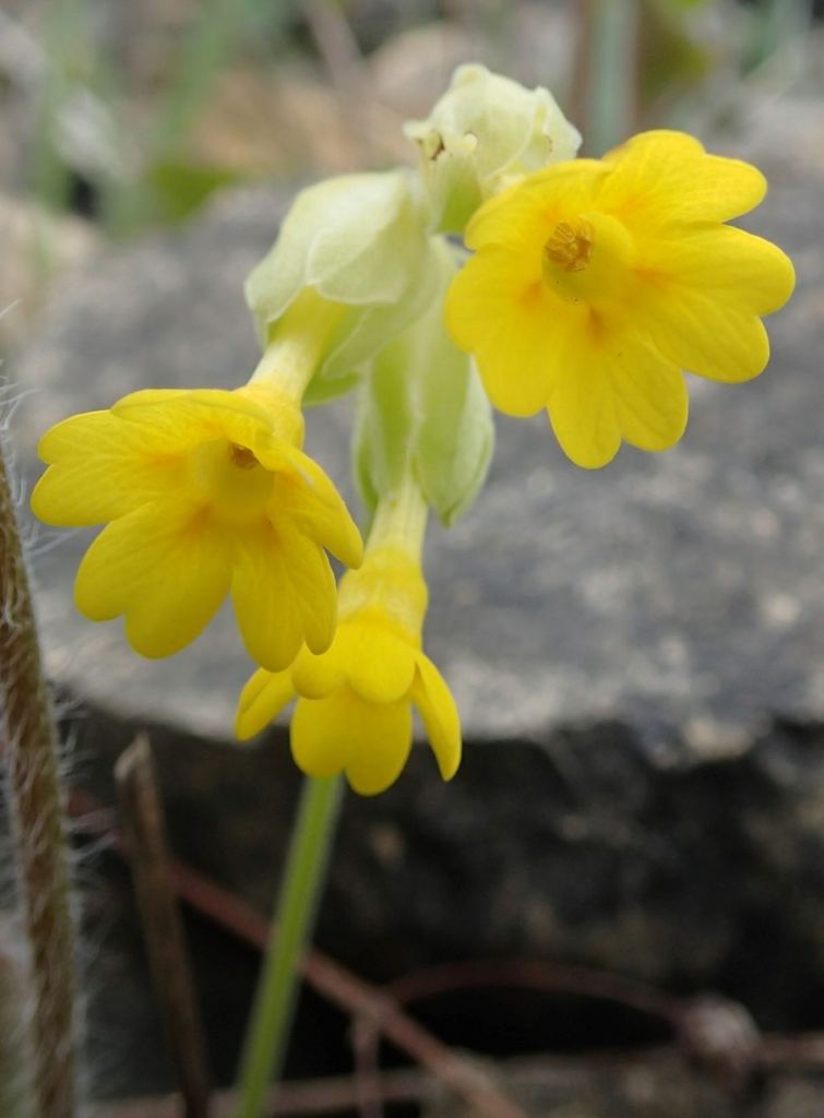 Left to right: Fragaria vesca, Primula veris and Carex caryophyllea