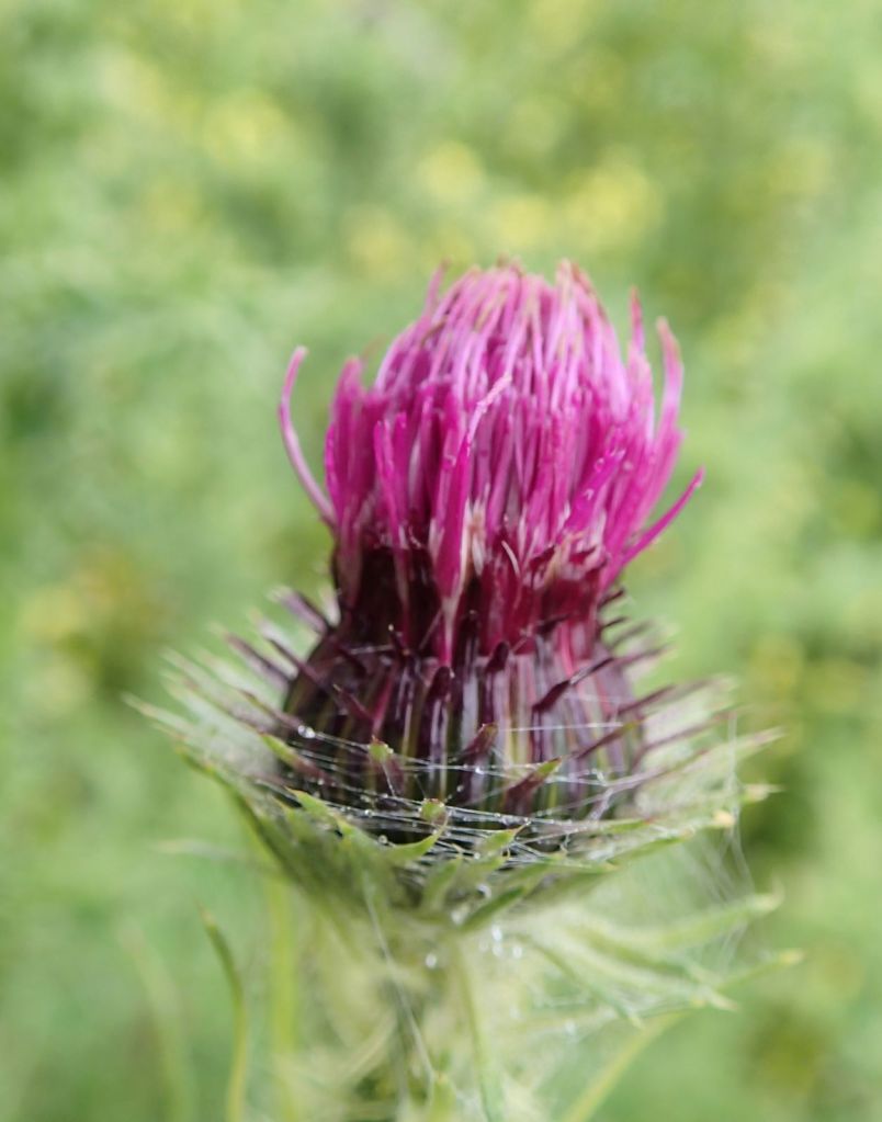 Weld and Welted thistle also tower above the Charlock. Cultivated as a dye plant for hundreds of years, Weld is rich in the bright yellow flavonoid, luteolin, which was combined with blue dye from Woad (Isatis tinctoria) to give the Lincoln green colour so strongly associated with Robin Hood.