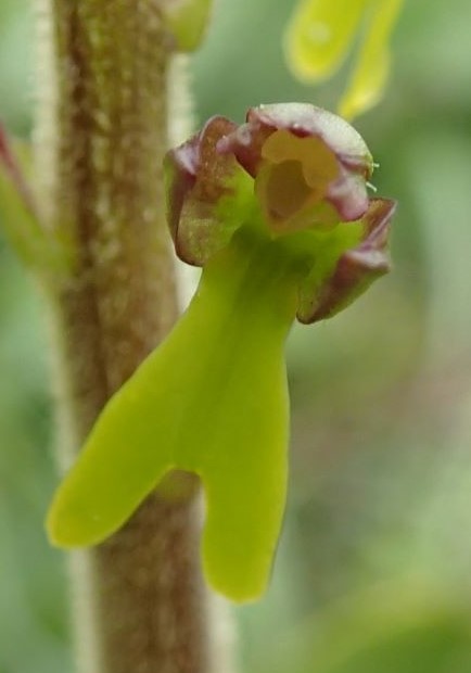 The flowers are pollinated by parasitic wasps, sawflies and beetles.  A wide range of species can collect the pollinia, which lie free on top of the rostellum.  When an insect touches the rostellum, the pollinia are glued to its body by a sticky liquid ejected from the rostellum and can then be transferred between flowers.