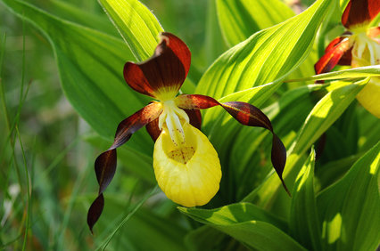 “Let’s go to Arnside for a girl’s weekend…” said Sue, “…and teach ourselves to identify some ferns”. Now that sounds more like it. Ferns are out of my comfort zone but definitely not so far out as a weekend of shopping! Having been lucky enough to grow up in the Lake District, I’d always regarded the Arnside area as something of a poor relation but it’s one of Sue’s favourite places, and I can now see why. A miniature gem of an AONB, at only 75 km2, Arnside and Silverdale packs a lot in – limestone pavement and grassland, ancient woodland, salt marsh and wetlands. Most of the underlying rock is Carboniferous limestone. Glacial erosion and deposition, water flow and the dissolution of limestone by rain water have shaped the landscape subsequently and produced a range of habitats for many different animals, birds and plants, perhaps the most famous plant being the Lady’s-slipper orchid, Cypripedium calceolus, reintroduced to Gait Barrows NNR from a tiny population of the wild plants found in the Yorkshire dales, after the orchid was believed to have become extinct.