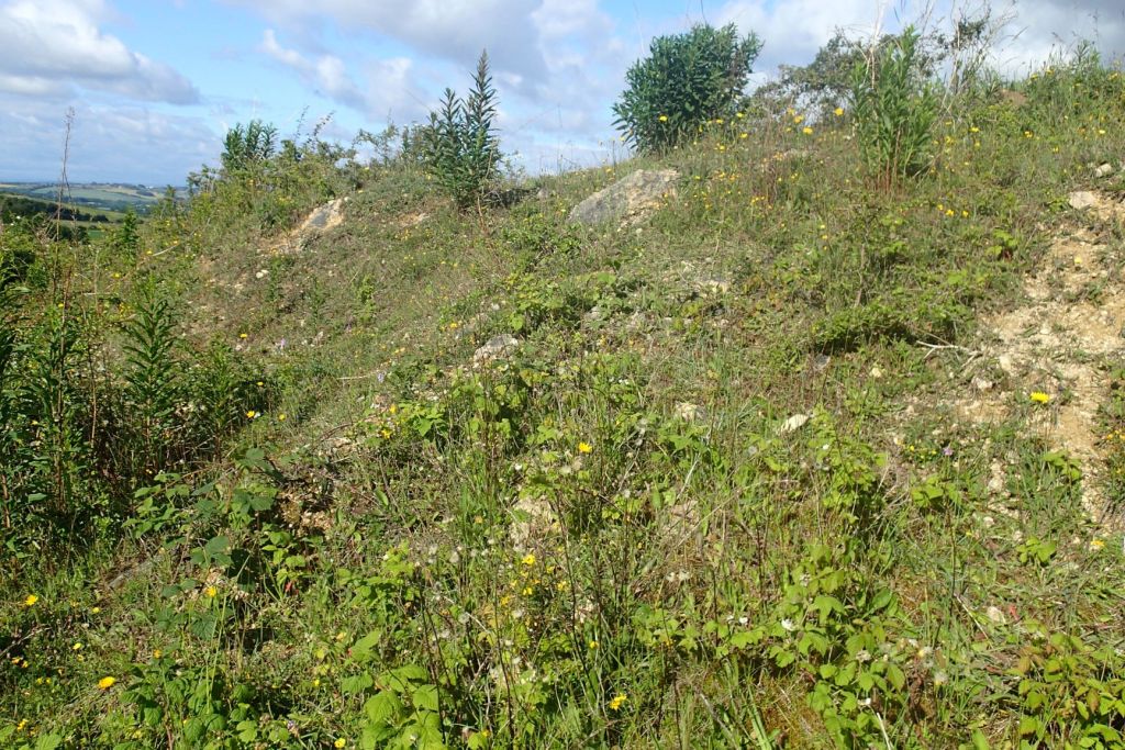 Top: Diverse vegetation on thin limestone soil of old spoil material