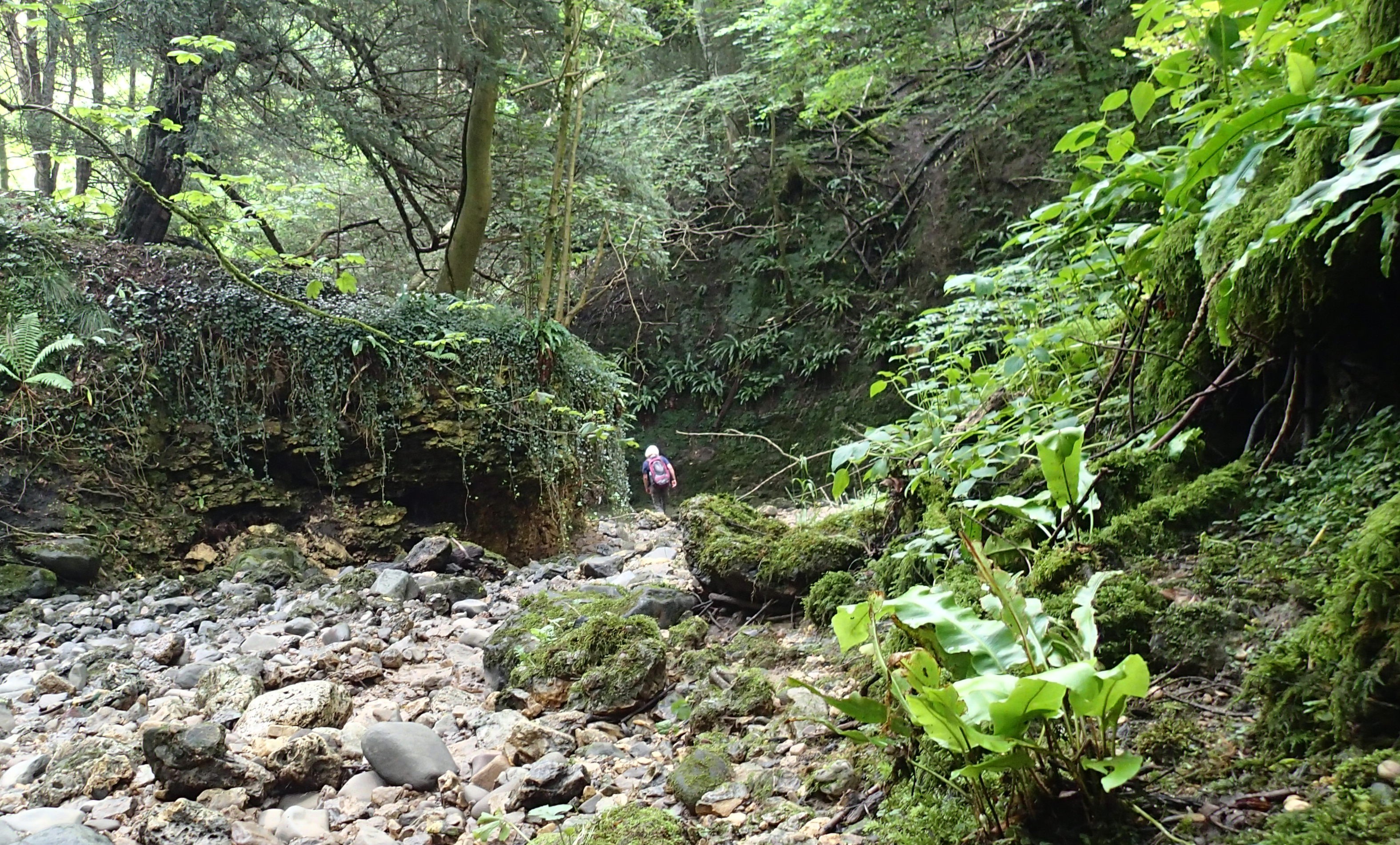 Yesterday’s walk took me to a nature reserve a little further from home than usual. Castle Eden Dene is one of a series of deep valleys, cut by streams running through the soft Permian limestone of NE England down to the North Sea. Depending on whom you believe, the valley is either named for its ancient Yew trees (‘Eden’ evolving from ‘Yoden’ or Yew Dene) or its name comes directly from the old English word ‘Idun’ for a spring. The dene is a Site of Special Scientific Interest and National Nature reserve, one of the largest areas of semi-natural woodland in this part of the world, with many plants indicative of ancient woodland. The deeply-shaded valley floor drips with ferns and mosses but also some interesting flowering plants, including Bird’s nest orchids, which I’ve yet to see.