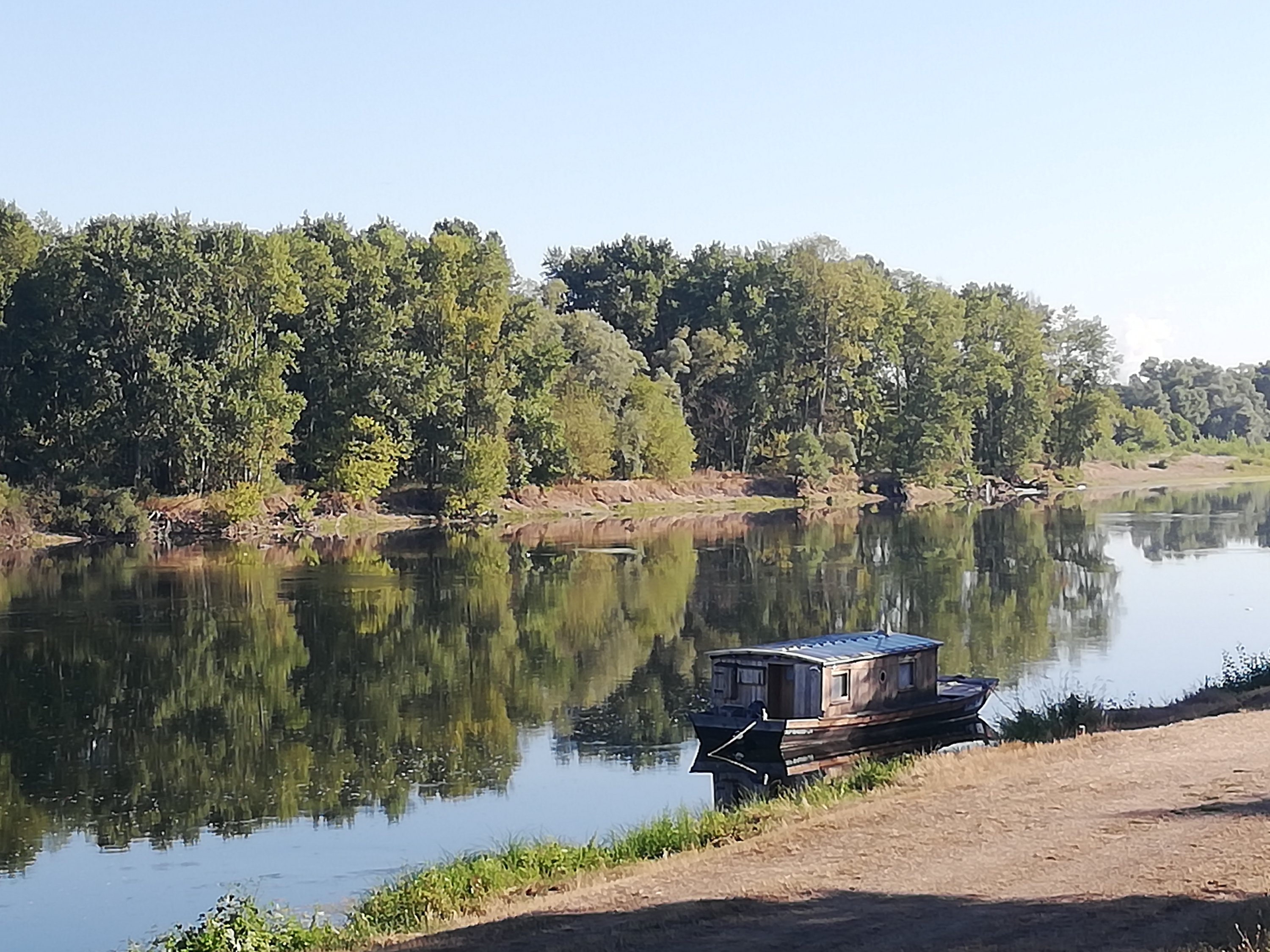 All went well to start with – despite our host, Vivienne’s, horrified look she did prepare a simple breakfast for us at 7.30 and we headed down from Mer to the bridge over the Loire in the morning cool. Much of the morning was spent alongside the river in lovely shade. For the first time we saw boats on the river, though they are clearly now just used for tourist trips.