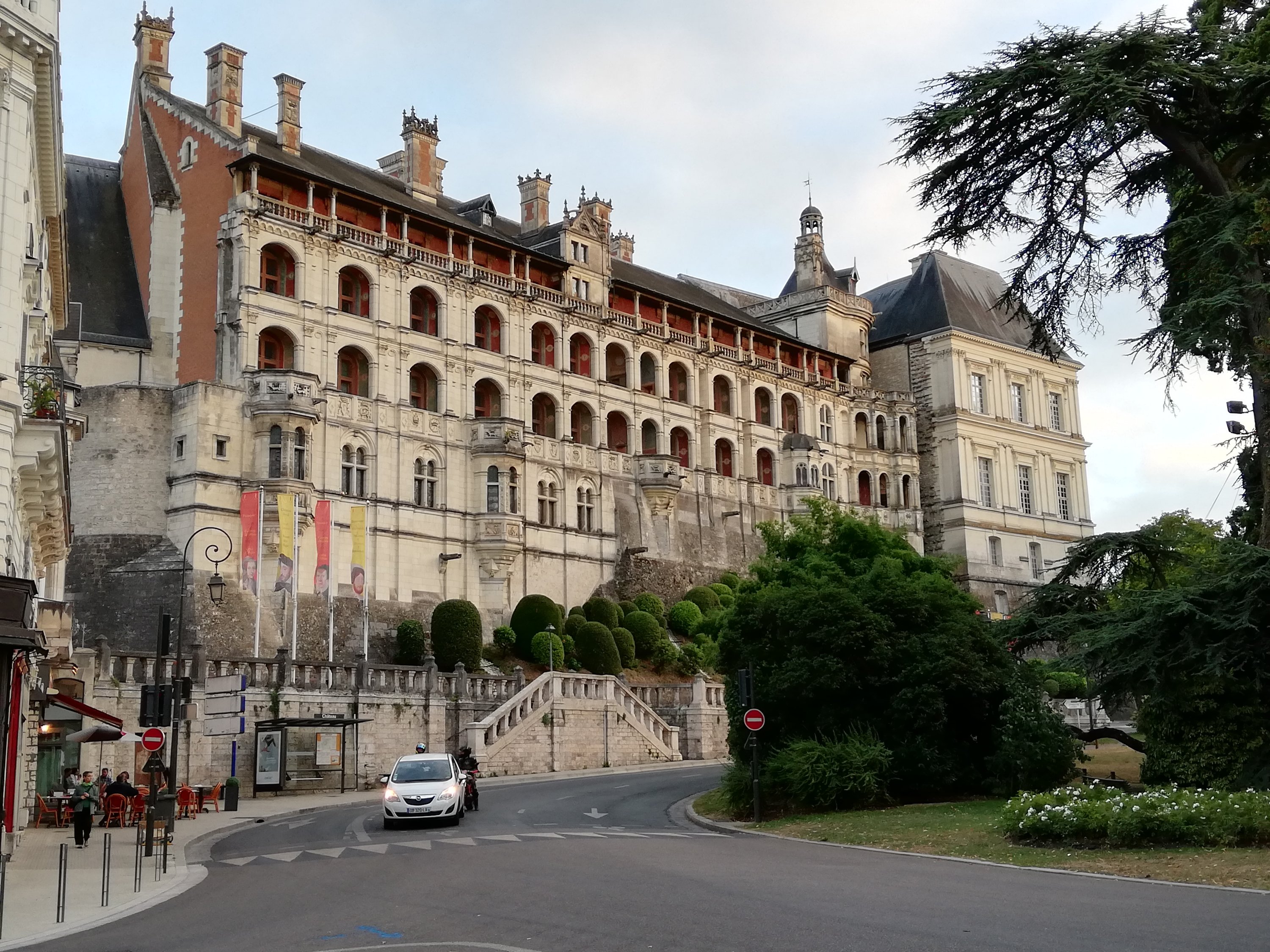 As the day was turning out to be longer than expected, after St-Claude-de-Diray we decided to bypass the ins and outs of the path again and headed straight down what looked like a minor road to the motorway bridge at Blois. It turned out not to be much fun – the road was a bit of a rat run. However we did bump into our first other long distance walkers of the trip! We saw Blois from a long way off – a bigger city than I’d expected – but it seemed to take a long time to arrive in the afternoon heat!