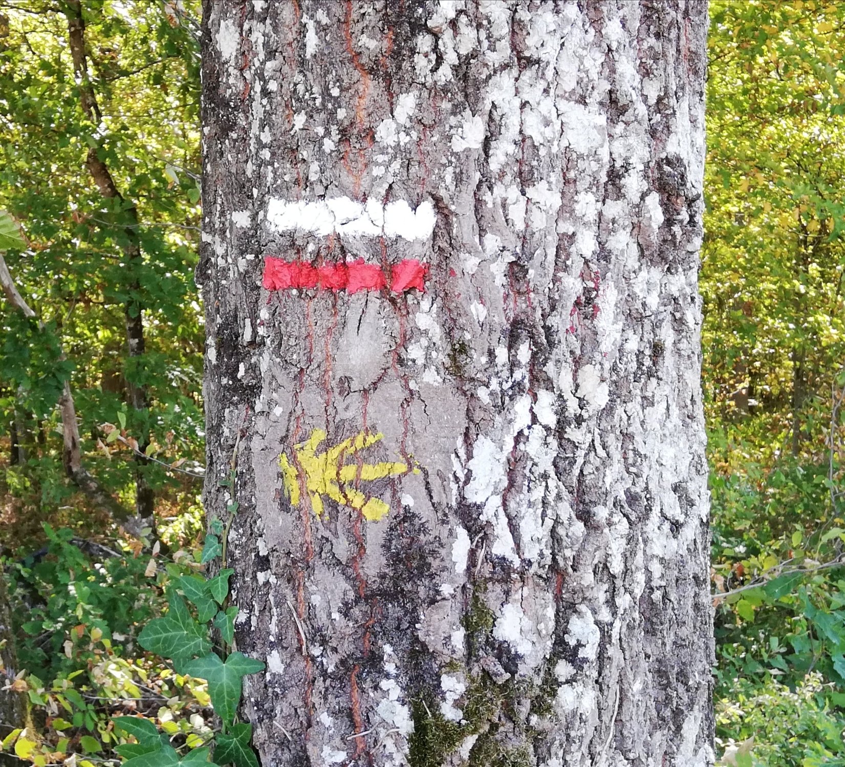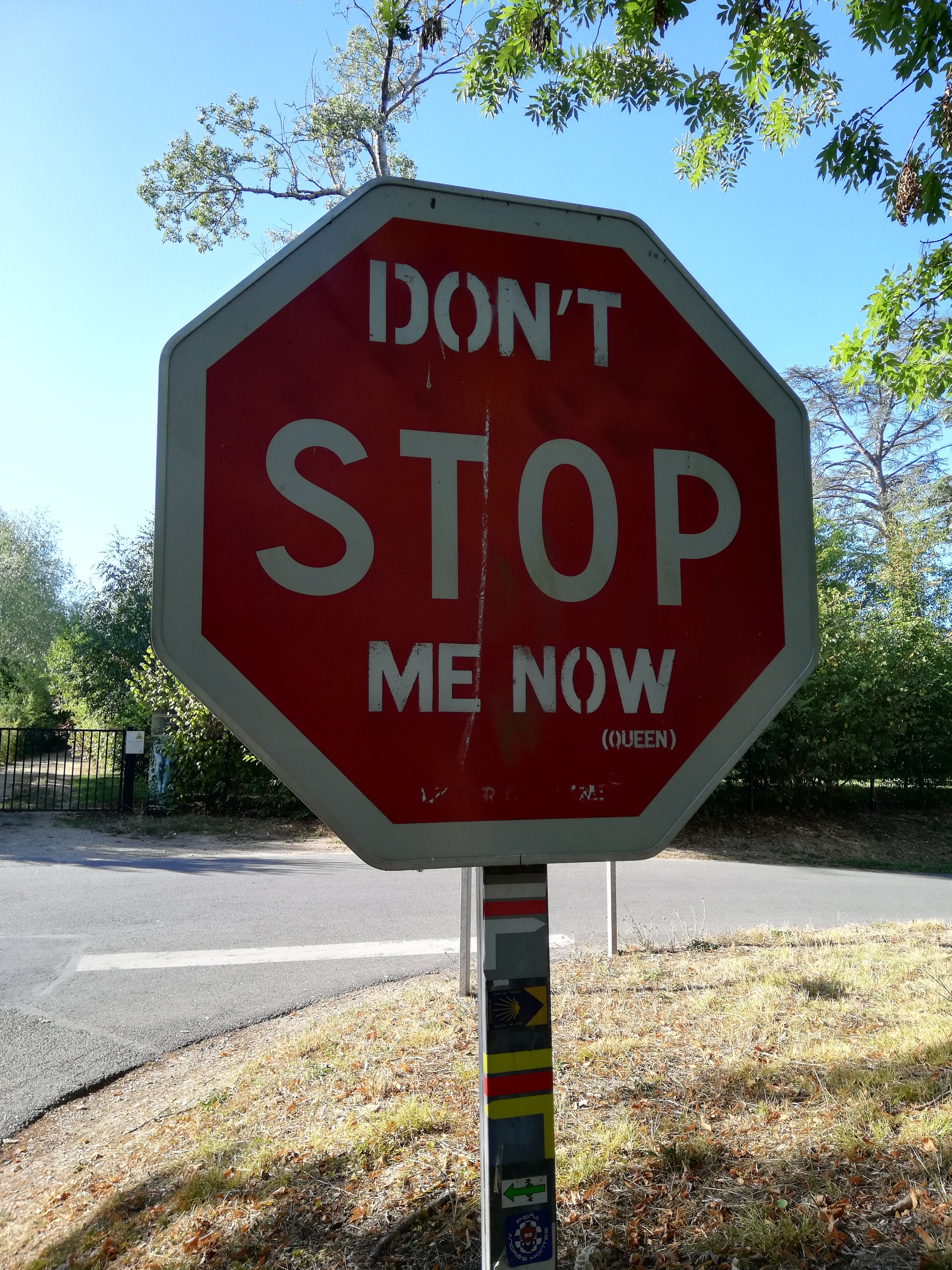 We met at Chaumont for coffee and for me to pick up emergency lunch pastries then Rosie crossed the river to get a train into Amboise whilst I carried on walking. I took a pragmatic approach again to the path’s ins and outs, looping away from the road towards Rilly but shortening the loop by taking a path through a shady plantation. One of the pleasures of today’s walk was the amount of shade – another was the fact there was much more variation in height above the river and terrain than on previous days. Landowners seem to take a healthy patchwork approach to the countryside – there are large fields of cereal stubble at this time of year but these are surrounded by big areas of mixed deciduous woodland. I suspect that it’s hunting (deer or wild boar?) that makes this viable but it does provide a refuge for much other wildlife – I saw red squirrels, woodpeckers, buzzards and many other birds today. Other walkers were conspicuous by their total absence though. This might be explained by the horrified looks all our Airbnb hosts give when we explain what we’re doing! It was good to see a few more Camino-specific signs appearing. There were no shops in Rilly and I wasn’t that tempted by a dry baguette, though I was entertained by the idea of a vending machine for bread.