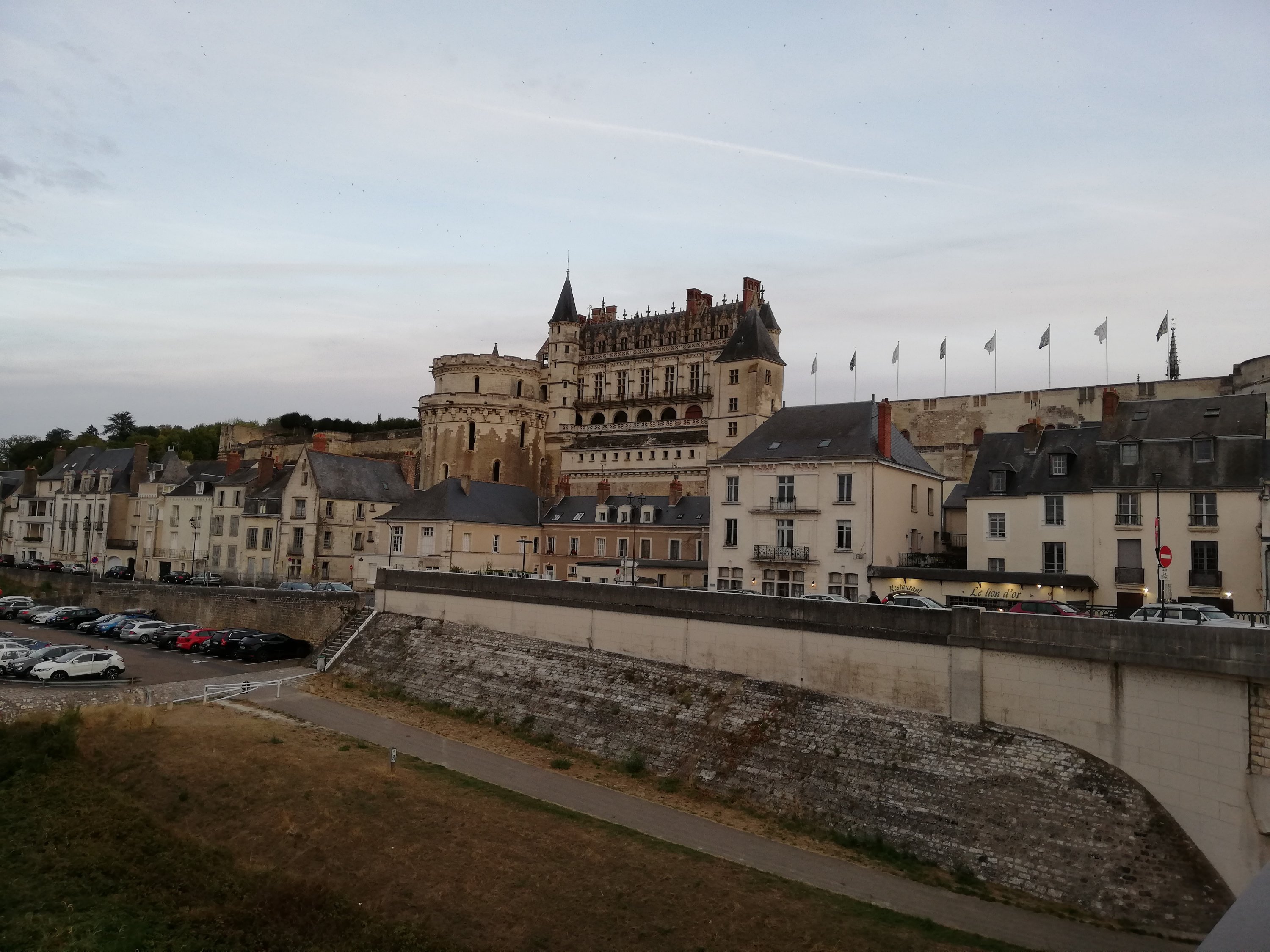 Beyond Rilly I took the riverside path again for a while then headed up the hill in a long diagonal to Souvigny-de-Touraine. It looks like a substantial place on the map and there are plenty of houses but, disappointingly, no cafe or Boulangerie so I had to eat my emergency pastries. From there, the path follows a long arc downwards, along the course of the Amasse, which joins the Loire at Amboise. Entering Amboise from this side is completely lacking in romance – past the fire station and municipal recycling plant and through an incredibly bland estate of new houses.It’s not till you hit the older streets that you are struck by the charm of the place which sports not one, but two, chateaux and some beatiful old houses, including some built into the chalky cliffs. Perhaps an equally big impact, after a day spent alone, is the huge number of tourists from all corners of the world. I hear more English spoken on my way to meet Rosie by the bridge than we’ve heard since arriving in France a week ago. Rosie has bought more blister plasters and scoped out a restaurant to get the mussels she wants for dinner so we have a much-needed cold drink and head to our somewhat idiosyncratic garden room Airbnb to rest for a while. My feet and legs are really tired and the blisters haven’t shrunk any but its no more than should be expected from a 21 mile walk with a pack! Chateau Royale d’Amboise