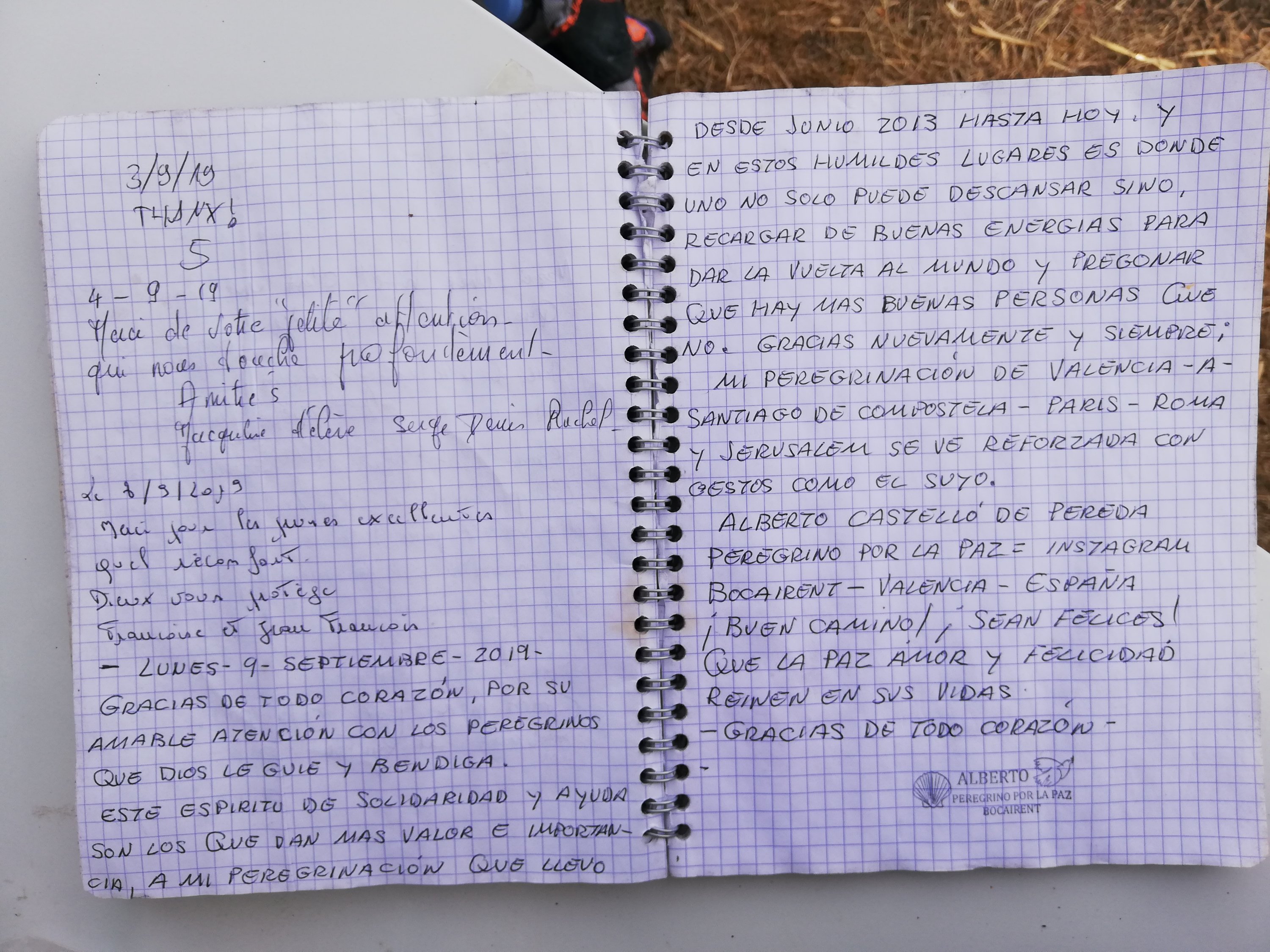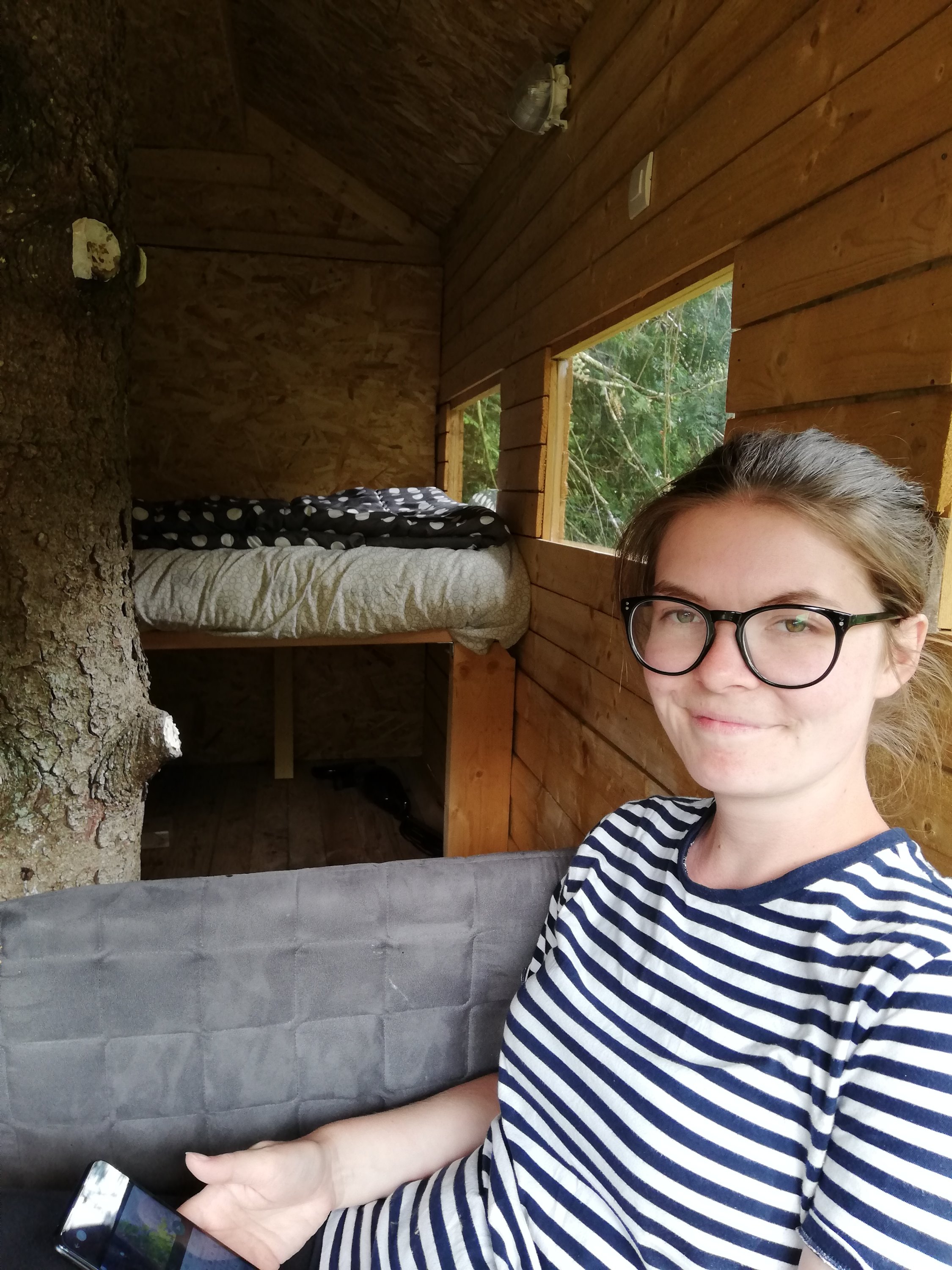I’m writing this sitting in our most adventurous Airbnb to date, a cosy treehouse 20 ft above the ground, with a compost toilet and a washing up bowl-come-sink which means it’ll be Glastonbury washes (i.e. wet wipes) for us tonight! Treehouse AirBnB in the valley of CourtineauThe area around is equally special – a secluded valley full of troglodyte dwellings carved out of the limestone cliffs, many of which have been extended into distinctly des reses. We’re less than a mile from the A10 motorway as the crow flies but it’s another world. The surrounding trees are full of birds – jays, woodpeckers and treecreepers, amongst others. Our arboreal pad would make a fantastic spot to sit with binoculars.Last night’s lovely Airbnb was only a few metres from the Camino route but we wanted to head back into the village to pick up breakfast, as usual, from the Boulangerie/Patisserie. We resisted most of the chocolate for fear of it melting but I chose a ligot – a bit like a plaited pain au chocolate. All was going swimmingly and we picked up the Camino signs again until, on the outskirts of the village: Rosie, “Are you sure we’re going in the right direction?” Me, “Of course – I’m sure there’s more than one roundabout in Sorigny…. But maybe this is the same one we crossed yesterday…” An about turn and a km or so later we were back where we started and finally on our way, joining the Camino at what looks like a very old stone cross. Fortunately we had a shortish walk planned for today – only 12 miles – and Rosie’s blisters are finally starting to heal so she can enjoy the walk properly.It was pleasantly cool and much of our way lay alongside, or through, dappled woodland. We saw a deer for the first time, gleaning from maize stubble – it bounded away into the woods on a well-worn path when it saw us. We’d planned to be at St Catherine de Fierbois in time to pick up both lunch and dinner as we knew there would be basic cooking facilities here and nowhere to go out and eat and just made it before the single shop shut for two hours at 12.30. Part of the delay was meeting our first genuine pilgrim of the trip, en route to Paris from Santiago and planning to go on to Rome and Jerusalem, carrying all his own camping stuff. We found out more about Alberto later when we came across the first pilgrim rest spot we’ve seen offered; a table and chairs, a bowl of rather overripe plums and an insulated box containing bottles of cold water. The ‘visitors book’ confirmed our suspicions than only half a dozen people a week are walking this part of the route at this time of year and also that Alberto, a pilgrim for peace, started walking in Valencia in June 2013. Either he’s walking very slowly or he’s stopping a lot en route!We treated ourselves to cheese for lunch as we only had to carry it as far as the shady square in St Catherine and bought pasta and dusty looking tins of tuna, tomatoes and olives to concoct something for dinner. We also, with great care, selected the only half bottle of wine in the shop (ever heard of Cote de Gascogne?) as we didn’t want to carry a full one!From St Catherine it was only an hour or so’s walk to Courtineau where the treehouse is, though finding it wasn’t quite so simple – Google maps shows it a few hundred metres from its real location. We are only 500 m from the Camino route though and Rosie will, I’m sure, make sure we set off in the right direction tomorrow!