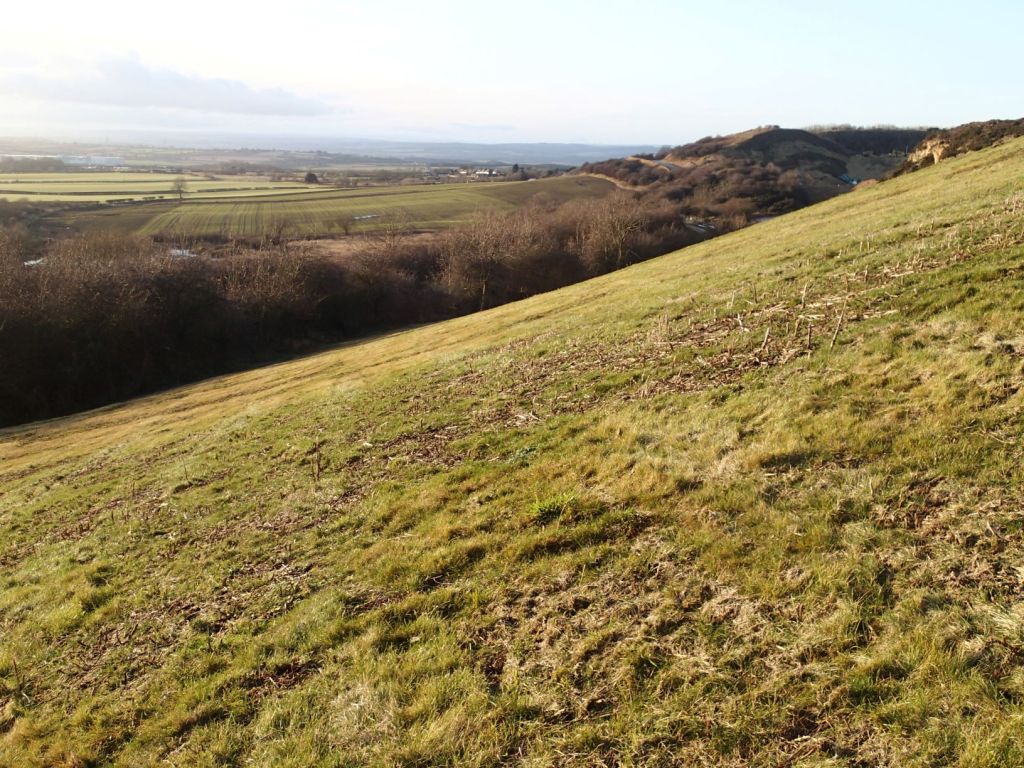 Like last month, there was nothing at all flowering this week in the area I’m looking at below Quarrington Hill. The restored land maintains its lawn-like stripes and the barer ground around it is just that, at this time of year.