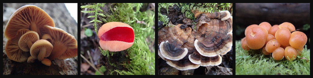 There were many more fungal fruiting bodies around than we were expecting to see in mid-January too. Our first hint of this was masses of Scarlet elf cups peaking through the fallen leaves but there were bracket fungi and toadstools of various sorts growing on trees too, both dead and alive. Sympathetic woodland management and a mild winter so far means there is plenty of food available for invertebrates and small animals and it was good to see bird and bat boxes on many trees.