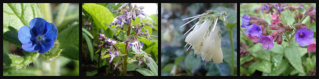 Ellen Willmott came from a wealthy family who moved to Warley Place in 1876, when she was a young girl and she was bitten early by the gardening bug. Her 21st birthday present was to be allowed to create a gorge and rockery in the alpine garden and she carried on plant collecting and developing the gardens when she inherited the property on her father’s death. She seems to have spent every penny available, and some that were not, on her passion for plants and gardens; buying houses in France and Italy, sponsoring plant hunting expeditions to China and the Middle East, cultivating some 100 000 varieties of plant and publishing a beautifully illustrated book on Warley Place and one on The Genus Rosa. At its peak, Warley Place employed 104 male gardeners (ironically, Willmott didn’t trust women) and was as important as Kew or Edinburgh Botanic Gardens for its range of plants. Rare plants from all over the world sat cheek by jowl in the walled gardens and carefully constructed rocky ravines, so beloved of Edwardian gardeners. The rare alpines and ferns which used to grace the ravine are long gone but a walk through the woodland still reveals many more common introduced, naturalised plants – Green alkanet, Abraham-Isaac-Jacob, Lungwort and Yellow figwort. The common name Abraham-Isaac-Jacob refers to the fact that the flowers change colour during their lives, like many other Boraginaceae.