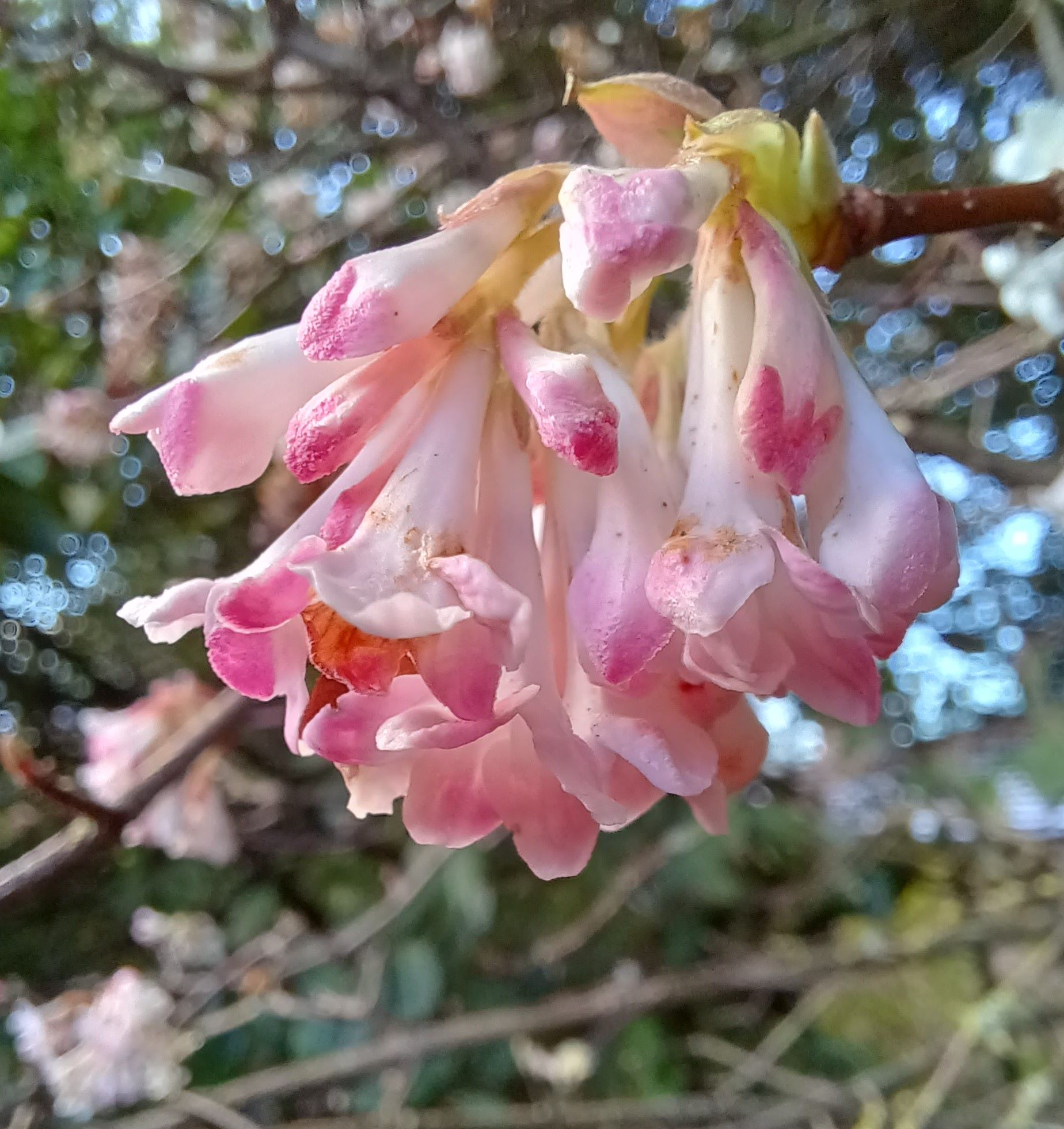 I guess the final picture should be Viburnum x bodnantense ‘Dawn’, filling the garden with fragrance through the coldest days of winter and surely a harbinger of spring.