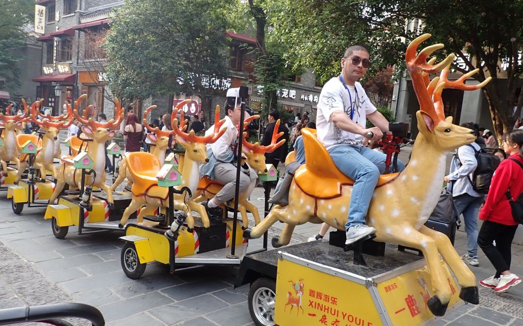 From the temple, we hopped back on the Metro to Tanhualin, an old part of Wuchan, which is now very touristy – full of hippy-dippy shops and fancy eateries, but also a road train in the form of a team of reindeer!