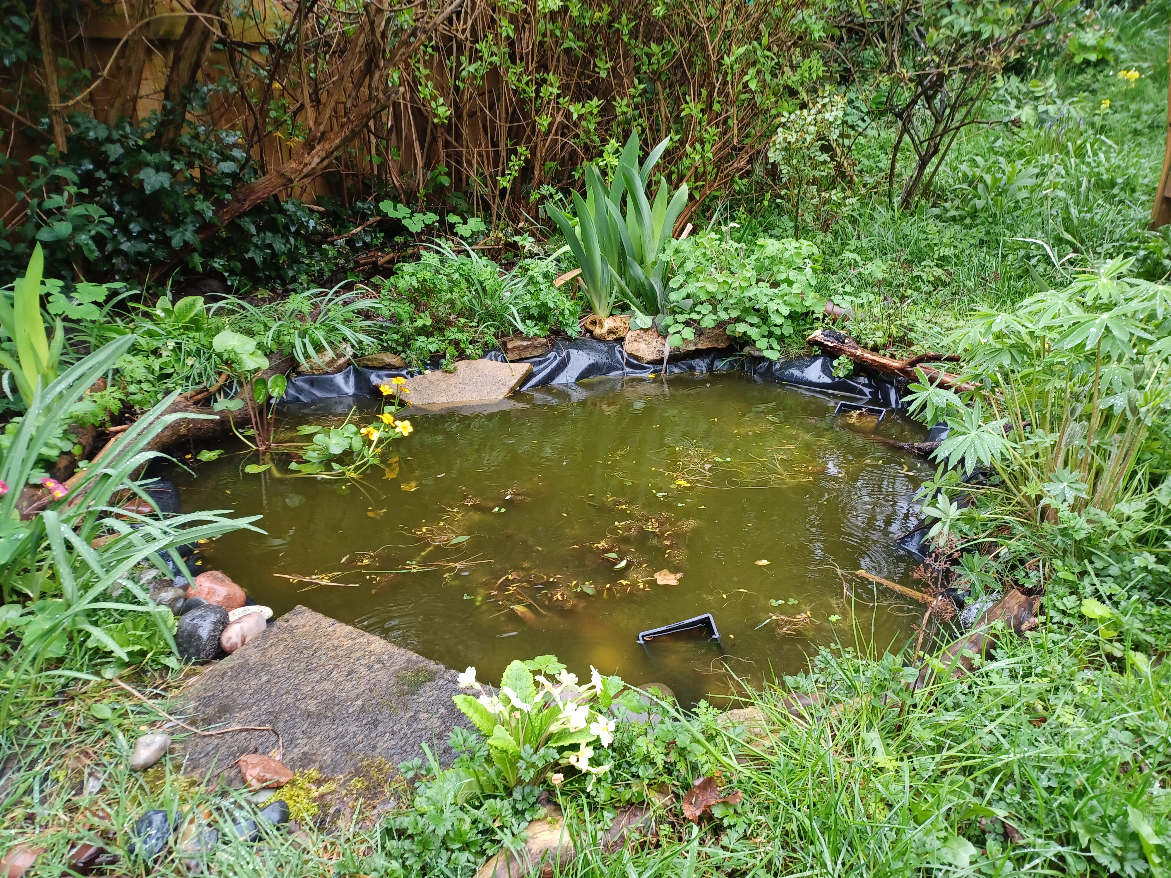 Almost on a par with the excitement of getting our Chinese visas in the middle of March was finding frogspawn in the garden pond we dug last year. The pond is looking nicely established, if a little full of algae, and I’d seen at least one frog in it so I had been hoping there might be a breeding pair…