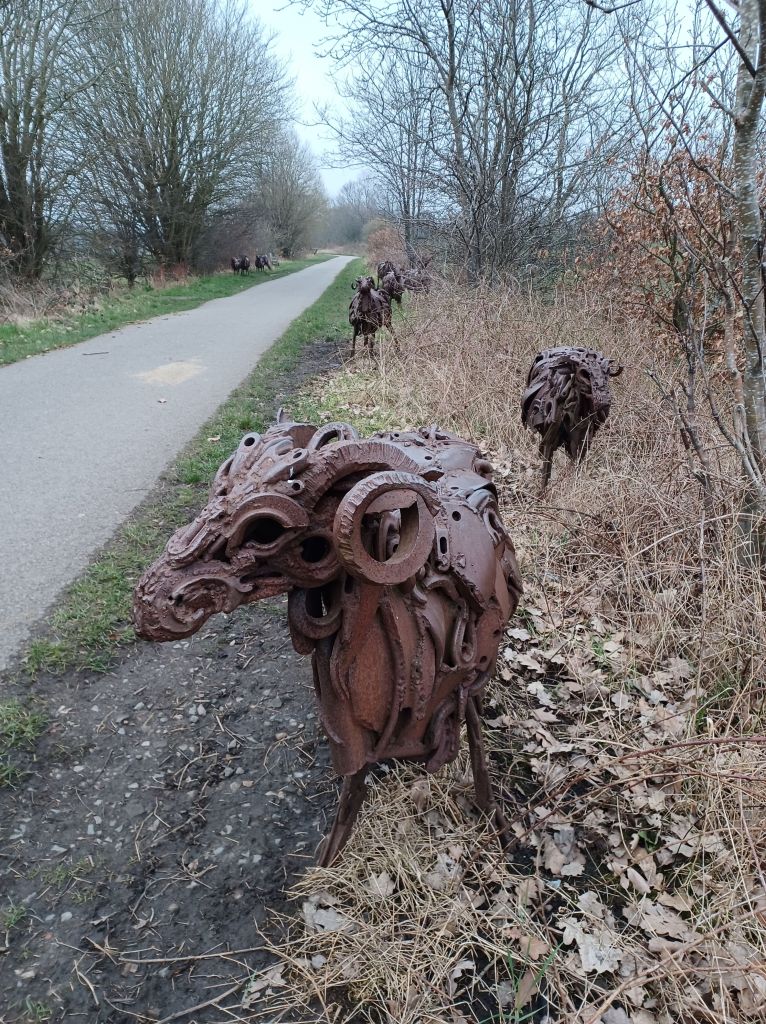My last natural adventure of the week was a short run along old railway lines repurposed as the Spen Valley Greenway, near where we stayed in Liversedge. The area reminds me a lot of our part of County Durham – a patchwork of rural and more urban areas, cheek by jowl. My run was brightened by hearing my first drumming woodpecker of the year and seeing Sally Matthew’s flock of Swaledale Sheep, made from recycled industrial scrap. It was good, too, to pass a sign for the Jo Cox Community Woodland, planted in late 2019 and early 2020, just before the Covid Pandemic struck. I didn’t run through the wood but hope it will prove a welcome sanctuary, like Pages Wood in Harold Wood, for both people and wildlife in years to come. It seems a fitting memorial to the murdered MP, especially in a time of heightened tensions between communities as a result of the war in Gaza.