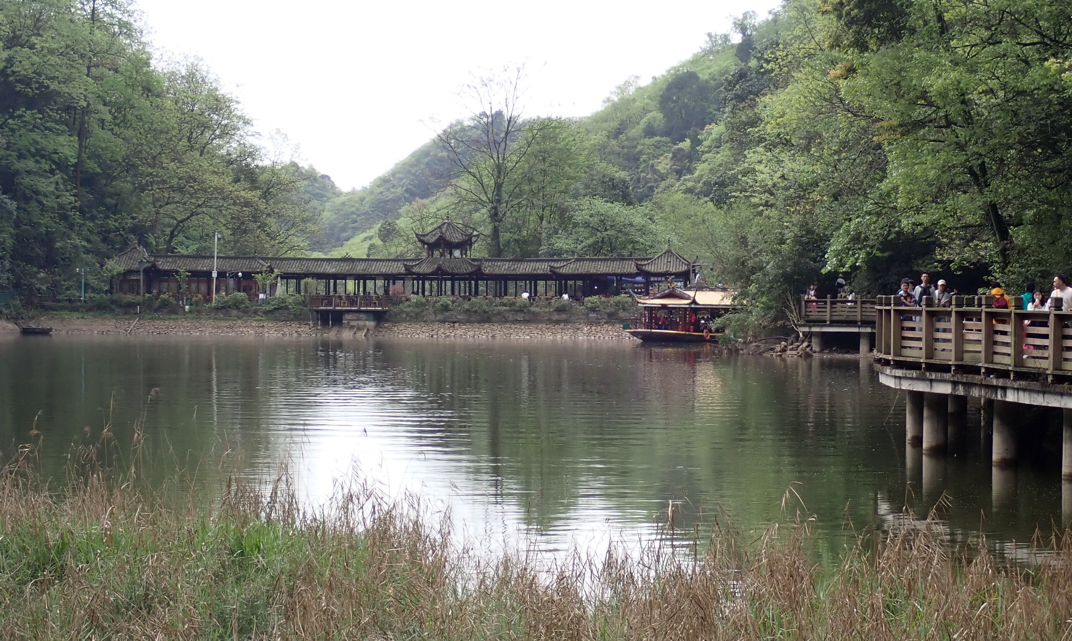 Chinese mountains and the towns below them are busy places, especially over a holiday, but it was lovely to waken in our AirBnB to a dawn chorus of cicadas and birds but no noise of construction work! The main route up the ‘front’ mountain is paved and passes through a series of Taoist temples, with plenty of steps and the option of a boat across Yuecheng Lake then a cable car (aka flying train) for the steep upper section to Laojun pavilion, at 1260 m above sea level. Given we had a nearly-two year old and no pushchair beyond the main gate, the cable car was very welcome. Looking at the photo below, taken from it, I’m not surprised we had aching calf muscles the day after our walk back down the mountain, especially given that one of us was carrying Casper much of the way as the steps were just too steep for him.