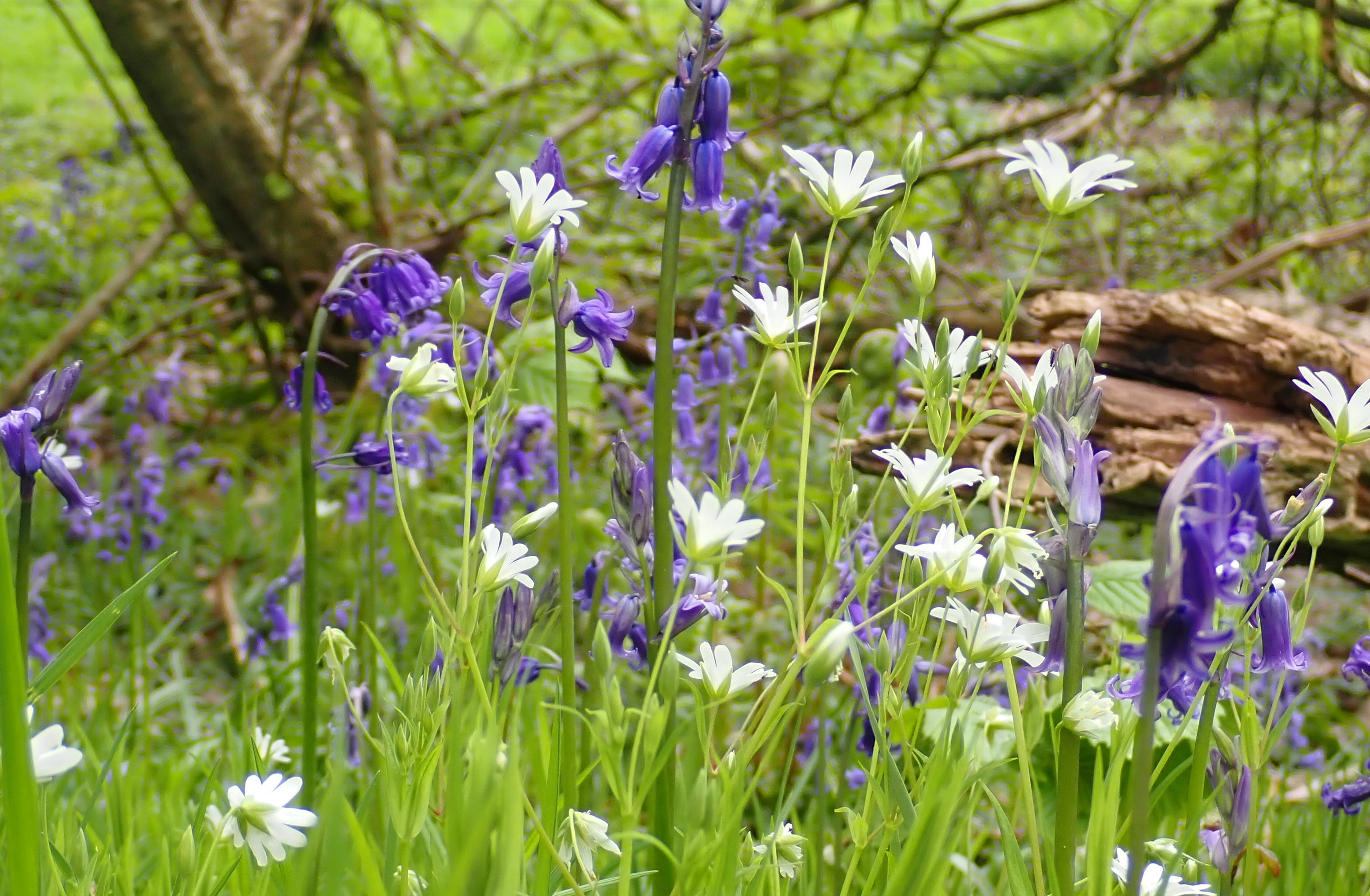 On Tuesday Gill and I had our annual pilgrimage to enjoy the sight and fragrance of masses of Bluebells in Hollingside Wood. It’s not just Bluebells of course; there are pops of white and pink Stitchwort and Red Campion, patches of delicate Wood Speedwell and swathes of Wild garlic in flower amidst the blue and the first Hogweed and Cow parsley of the year have burst into flower in the hedgerows after a few warm days.