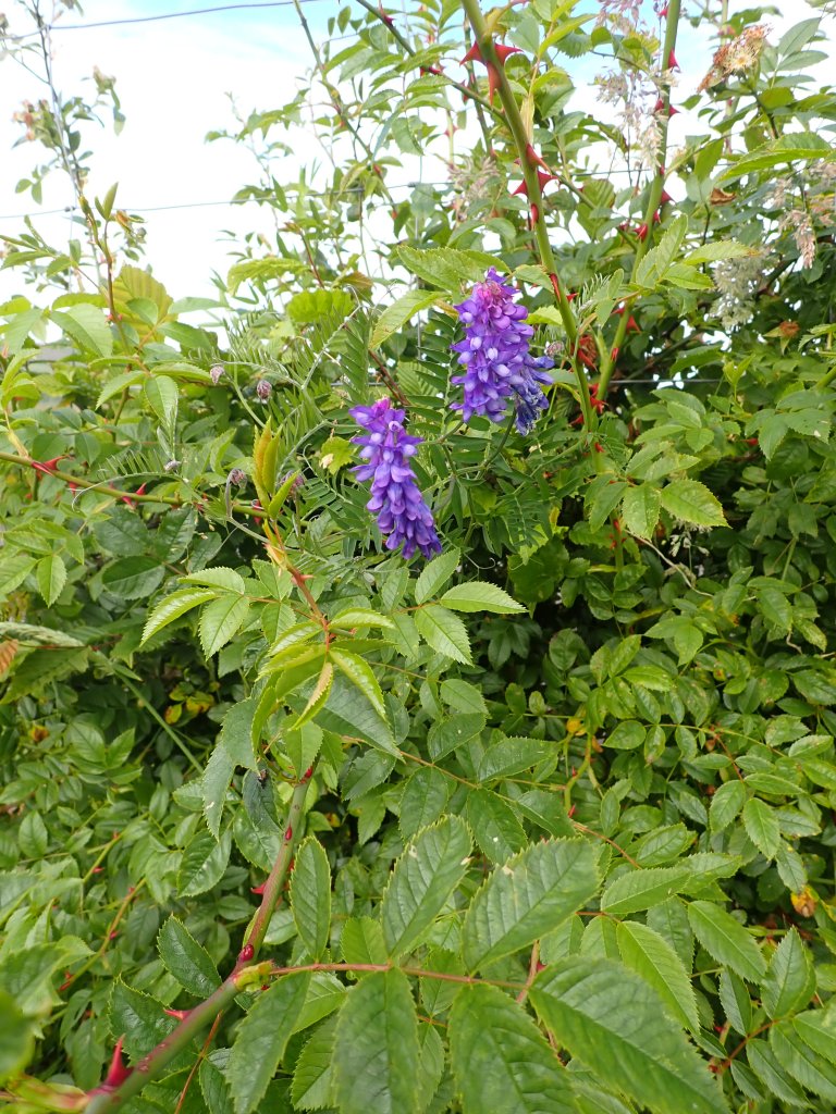 In the allotment I’ve been picking raspberries and black, red and white currants, despite the bushes being swamped with Bindweed!