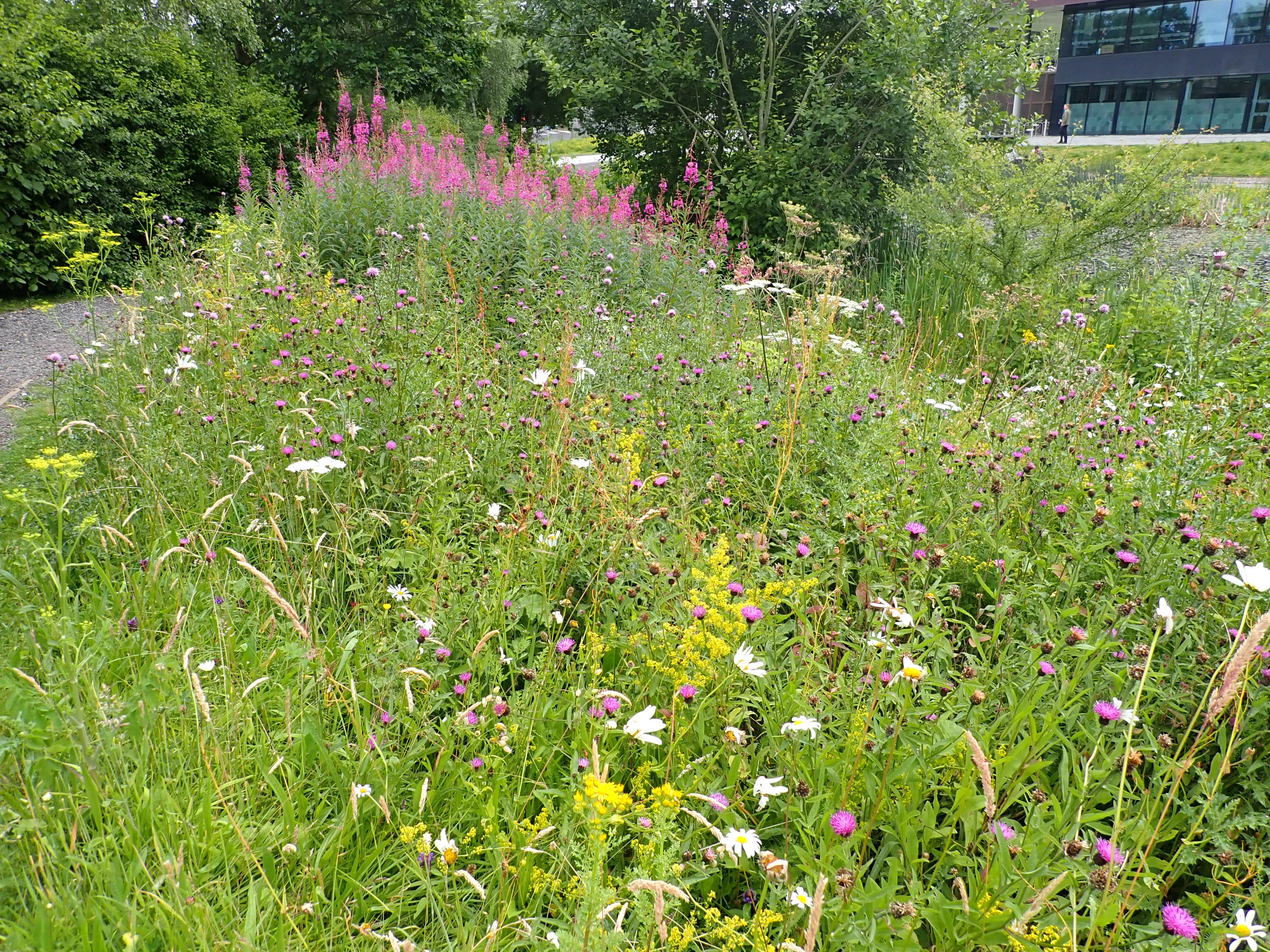 The weather in the North East this week left a lot to be desired so opportunities for being out in the garden and allotment were limited and an activity in the Botanic Gardens we’d planned for a group of Y6 children ended up having to be held in the glasshouses. The good thing about the university’s reduced mowing regime is that we were able to collect a wide range of wild flowers to look at with hand lenses from within a very short distance of the gardens to help them understand the different adaptations of wind and insect-pollinated species. These included Rosebay willowherb, Ragwort, Mallow, Ox-eye daisies, Bird’s-foot trefoil, Red and White clover, Knapweed, Black Medick, Self-heal and several grasses.