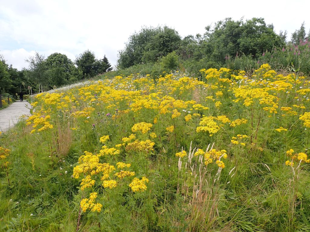 We were back home for work in the early part of the week, without the family, so there was time for me to carry on appreciating the impact of the reduced mowing regime around the science site. In places the grass has been left completely uncut and tall species such as Ragwort, Ox-eye Daisies, Teasel, Dock and St John’s Wort are thriving, with Ringlet butterflies providing a visible marker of the invertebrates enjoying the new habitat. Where the grass is being mown occasionally, species such as Self-heal, Bird’s-foot Trefoil and hemi-parasitic Red Bartsia are doing very well; the importance of a range of mowing regimes for maximum biodiversity is clear.