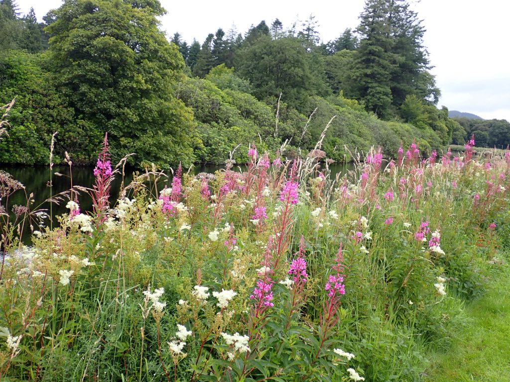 In this part of the world at least (the Campbeltown peninsula, in western Scotland), last week’s heatwave is but a distant memory! Monday’s wet weather activity was a ferry ride from Tarbert to the hotel at Portavadie, on the East shore of Loch Fyne, with an outdoor swimming pool (to get wet again!) Kate spotted the lichen Nephroma laevigatum, growing on a wall– it is unusual in having reddish-brown apothecia (cup-like fruiting bodies) attached to the under surface of its thallus, which makes it relatively easy to identify. Kate says it is eaten in China, though I couldn’t find any reference to that in UK literature. We kept our eyes peeled on the ferry but didn’t see any porpoises, but we were able to watch seals hauled up on the far side of Loch Gilp using a telescope in the sun room of Alec’s friends house later in the week.