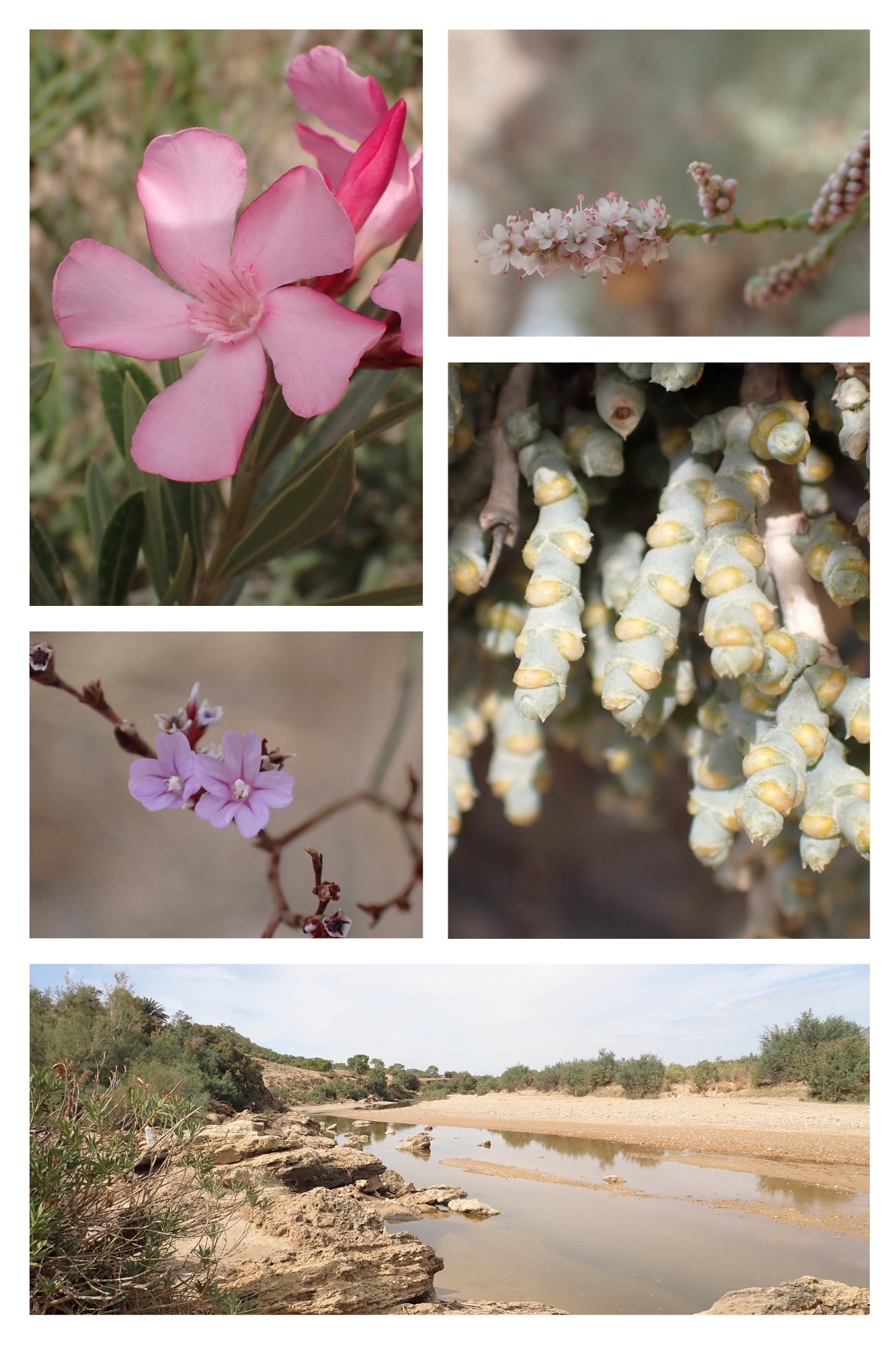 Of course, I can’t complain about Martyn’s geeky behaviour without admitting I was having a good look the plants around the wadi or river valley into which the springs drain. It was the first time I’ve seen Oleander growing wild, but more surprisingly, there were several species I’d normally associate with coastal habitats, including Sea Lavender and Glasswort. It’s not so surprising, perhaps, when you know that the water in the spring contains 2.6 g of Sodium and 4.8 g of Chlorine ions per litre – about one fifth of the amount in seawater.