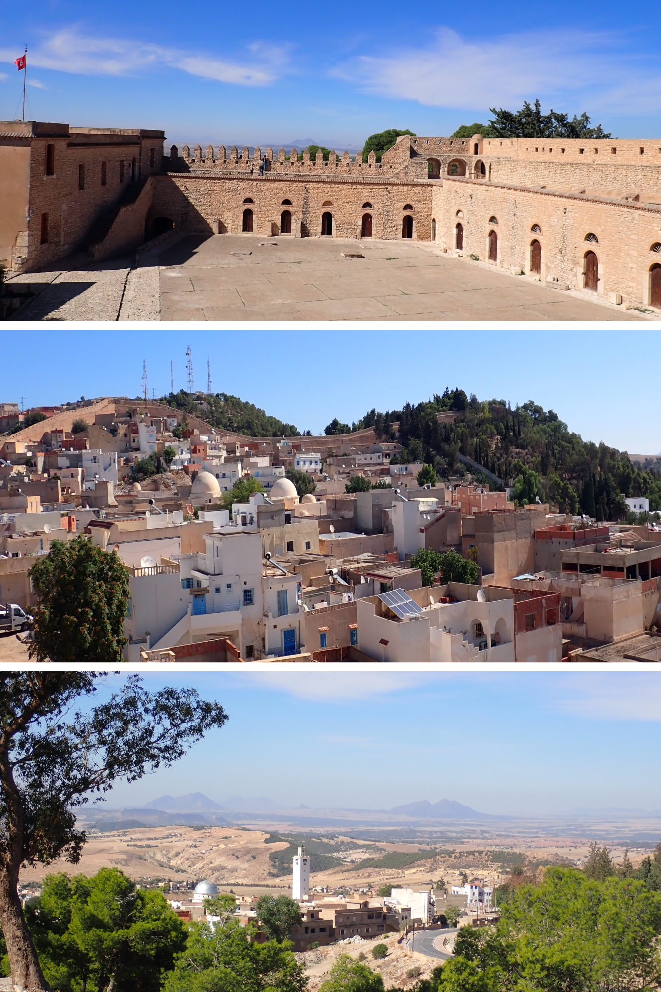 The courtyard of the Great Fort of the Kasbah, the walled medina and the view south from Kef