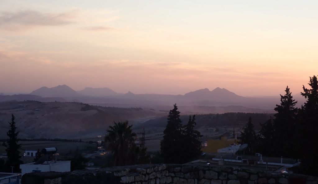 The town of El Kef, in the Tell Atlas, where we’ve spent the last few days, is not somewhere which sees a lot of European tourists judging by the reaction we get from local school children! They turn out to be the one group of people who might engage in a bit of chat in Arabic with me, on their way to school – at least to the extent of working out each other’s names, where I come from, and where else we are visiting in Tunisia.  We’ve seen no other Europeans at all. Our guest house here is in a beautiful spot above the medina, with great views over the mountains to the south and west, most of which are sadly no-go areas for us on the basis of FCO advice – they are too close to the Algerian border.