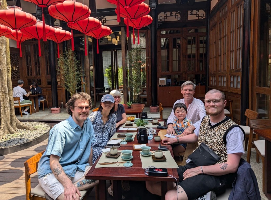 The main highlight of the trip, of course, was spending time with the Chinese contingent of our family but other themes emerged too. A love of good food brings us all together and sharing the ‘Farm-to-Table’ tasting menu at the Michelin-starred Mi Xun teahouse, near Daci Temple in Chengdu, was an unexpected treat. The restaurant has a green star alongside its conventional one, for the sustainable sourcing of its ingredients, and is a beautiful, calm space in the centre of the bustling city. I can’t imagine taking a nearly-three year old to a restaurant with a Michelin star in the UK, but Casper coped very well with his first experience of fine-dining, sharing bits of everyone’s food. There is very little he won’t eat. He did neck Kate’s amuse bouché cakes without her getting a look in, but mostly shared well!