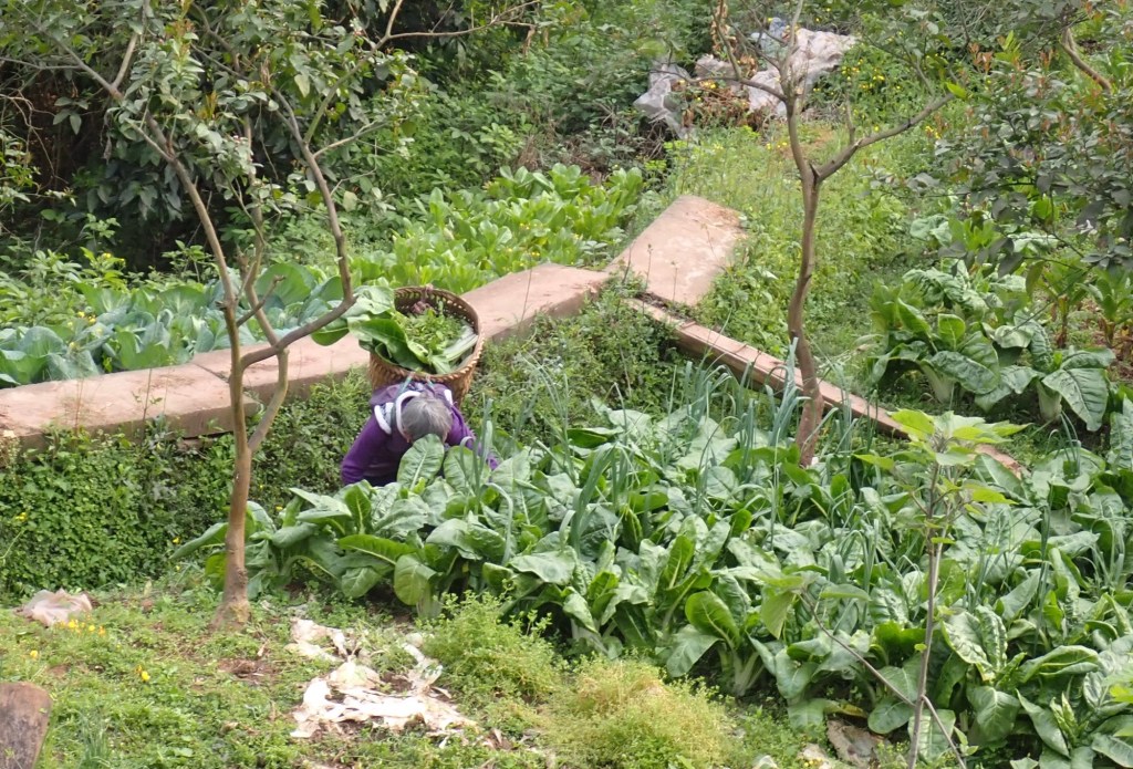 We travelled around quite a lot by train this time, and one thing that struck me was the lack of really large scale monoculture, though I suspect things are very different the flatter, delta regions of eastern China. In the Sichuan and Shaanxi at least, the rural landscape is a patchwork of small fields, often terraced, planted with a wide variety of crops. Even winter oilseed rape, grown in vast fields across swathes of the UK, is grown here on a scale more usually associated with subsistence level agriculture. Kate’s grandmother, in her late 80s, still grows a lot of the family’s vegetables on the land around their family home but I don’t know how much that will be affected by the new motorway currently being built through the area. Some land must have been lost, at least temporarily, in the construction process but, as we walked through the underpass on our way up the hill to Kate’s grandfather’s tomb, the sides of the road were still covered in a lush blanket of chives, peas and beans. There are none of the issues here around their compulsory purchase of land which have beset projects such as HS2 in the UK, as all land belongs to the state anyway and the government can do what it likes with it. The use of every available space for kitchen garden produce feels a bit like guerrilla gardening! I wonder how much of the produce we saw for sale in the street markets of Xi’an comes from these sort of places.