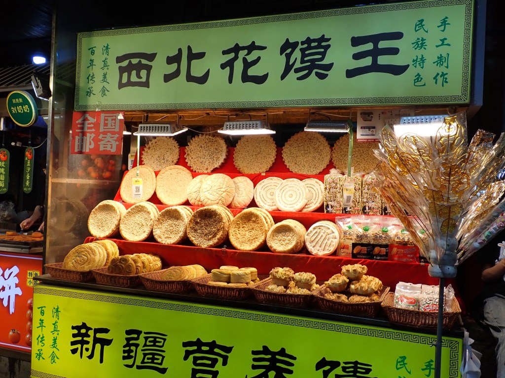 Every part of our trip seemed to have its own culinary highlights, from the tableful of dishes made from local produce and cooked in a single wok over a wood-burning stove at Kate’s father’s village near Shi Yang Zhen, to the mutton skewers (for the meat eaters) and cumin-encrusted flatbreads in Xi’an and the barbecued skewers of tofu and vegetables we ate near Tazishan park.