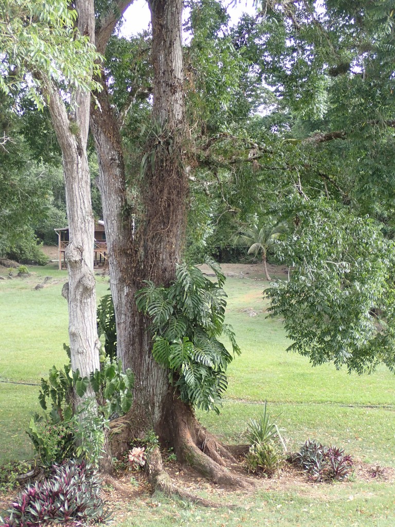 Las Cuevas is, not surprisingly, just like the pictures – a clearing in the forest with a cluster of wooden buildings, mostly on stilts. We’re surrounded by wildlife. A group of Scarlet Macaws which were hatched and fledged here this year, before being released, are still roosting in a large tree on the edge of the clearing. They fly around at dusk, squabbling noisily like a group of unruly teenagers. Turkey vultures have claimed a large fig tree, a huge flock of Montezuma’s Orlopendulas the Cedar tree close to the main building and a big family of Oscillator turkeys are foraging in the short grass. The plants too are like something from an Attenborough film – the big Cedar has vines, including Monstera deliciosa (Swiss cheese plant) scrambling through it and the higher branches are covered in epiphytes such as Tillandsia. There are sensitive plants (Mimosa pudica) nestling in the short grass around the site which swiftly fold up their leaves as we walk past.